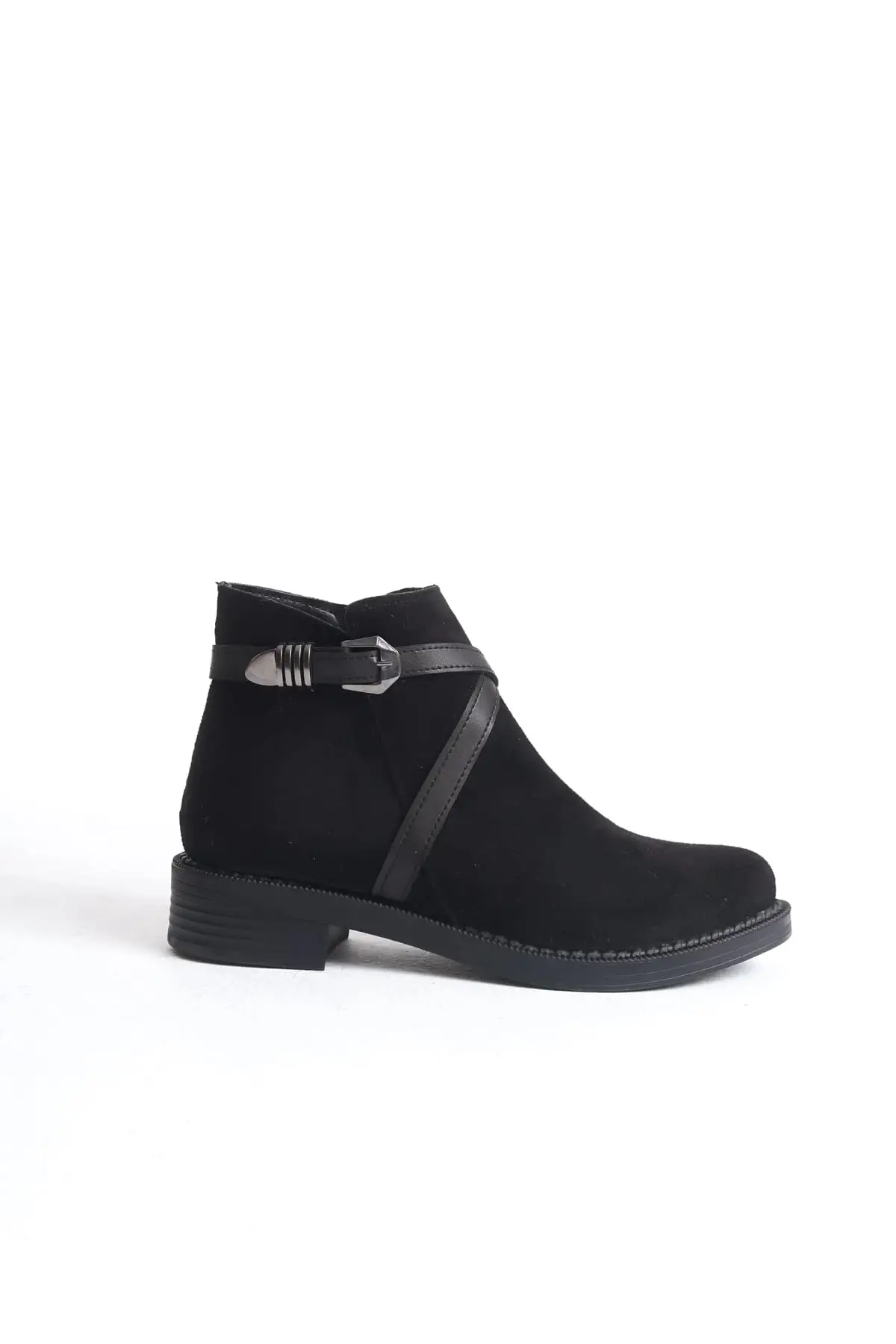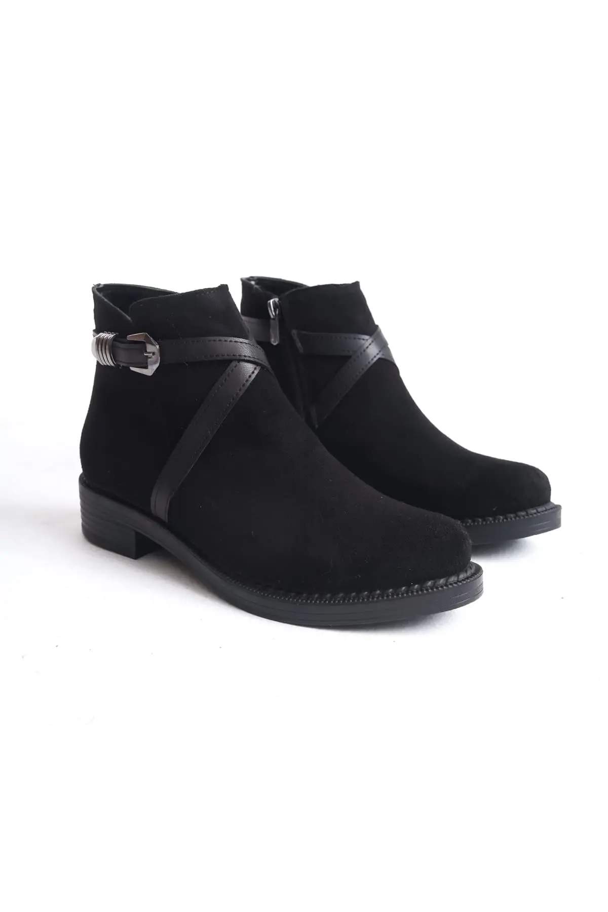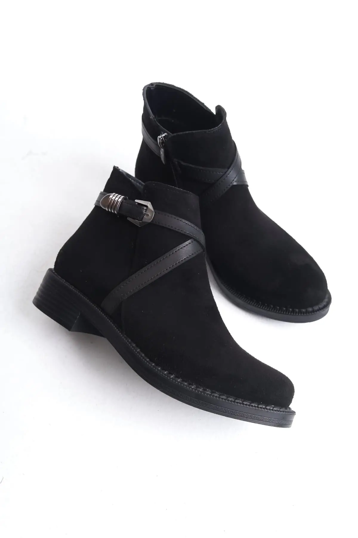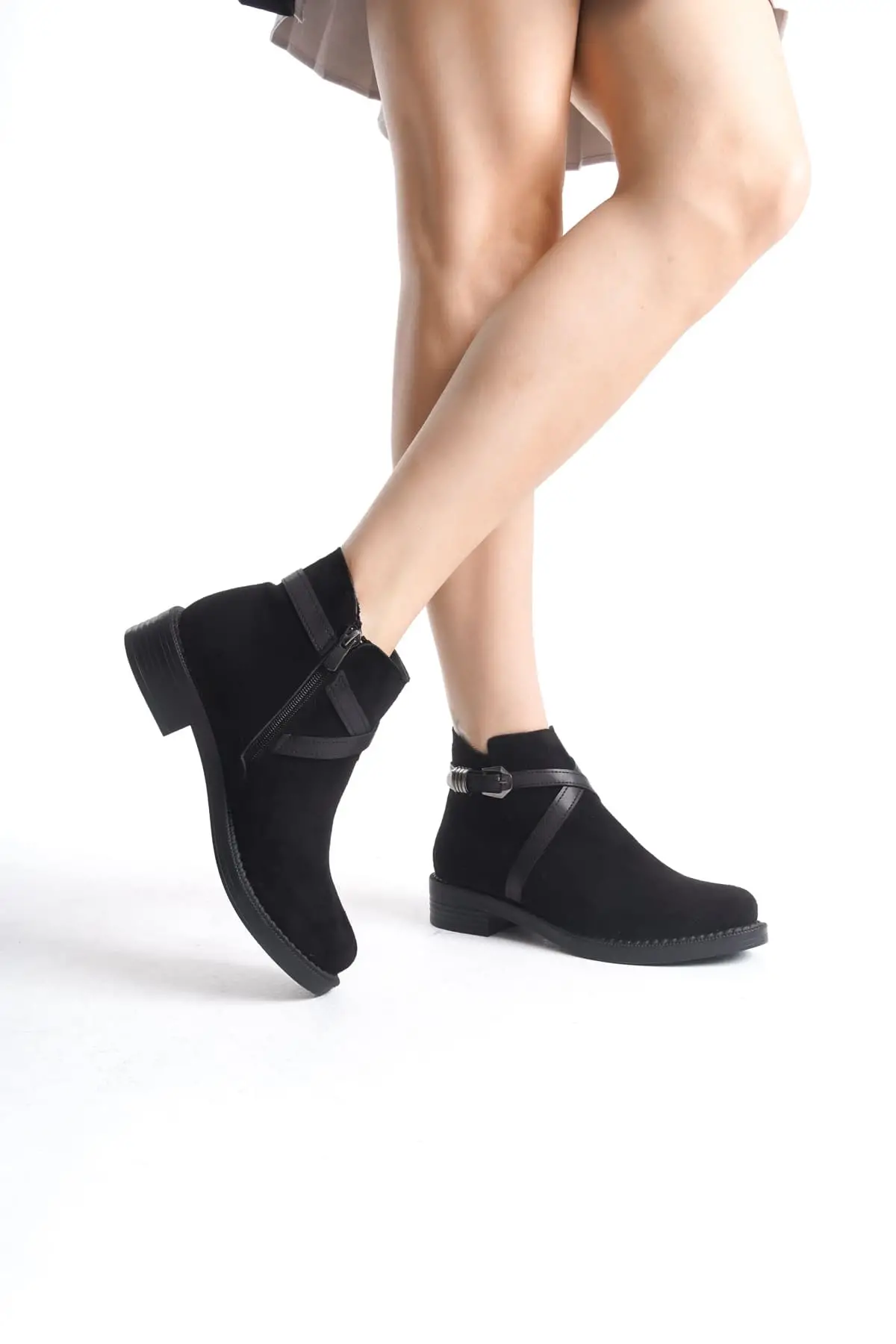 Larıssa Fermuarlı Ortopedik Taban Topuklu Süet Kadın Bot St - Siyah