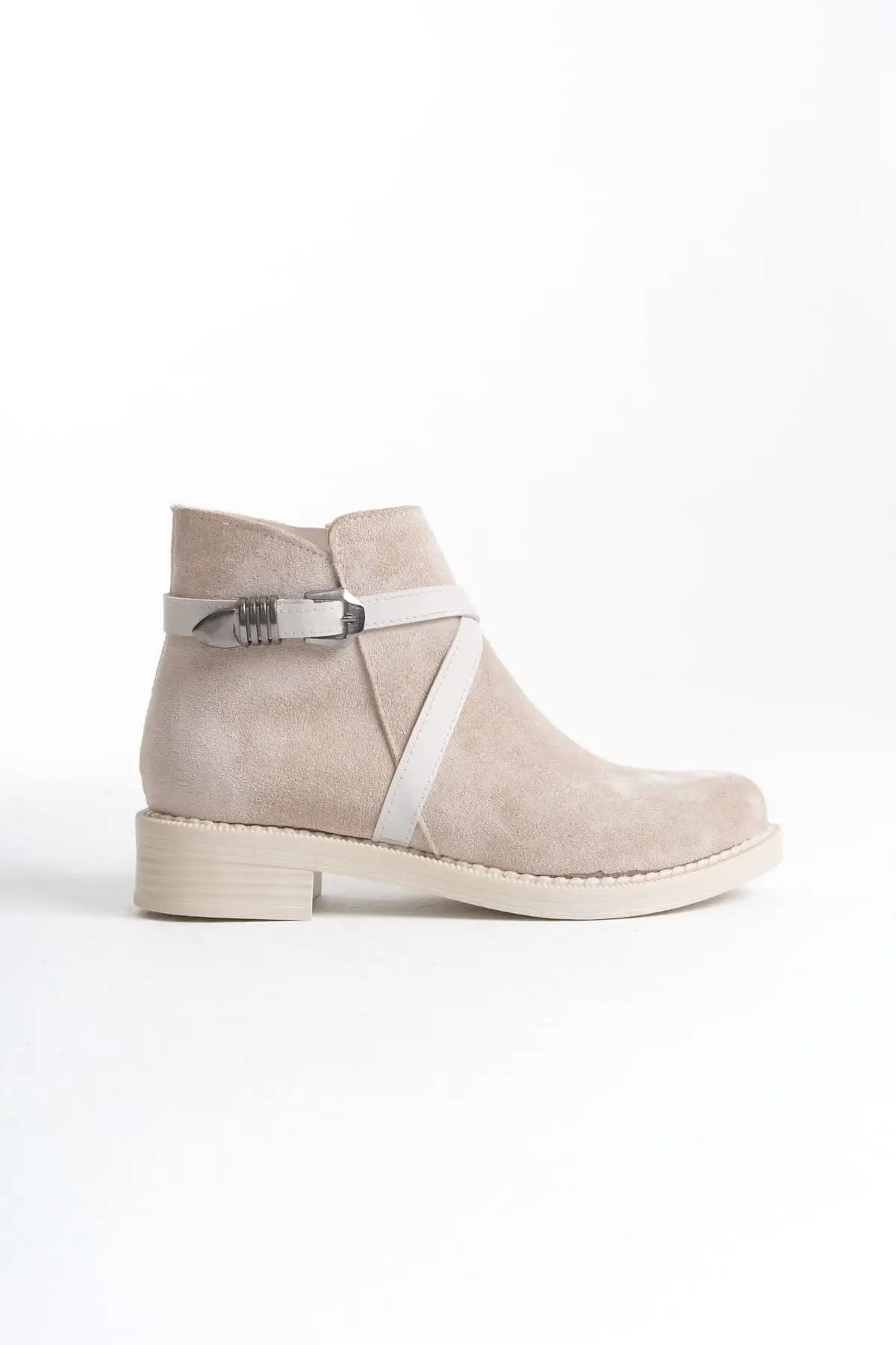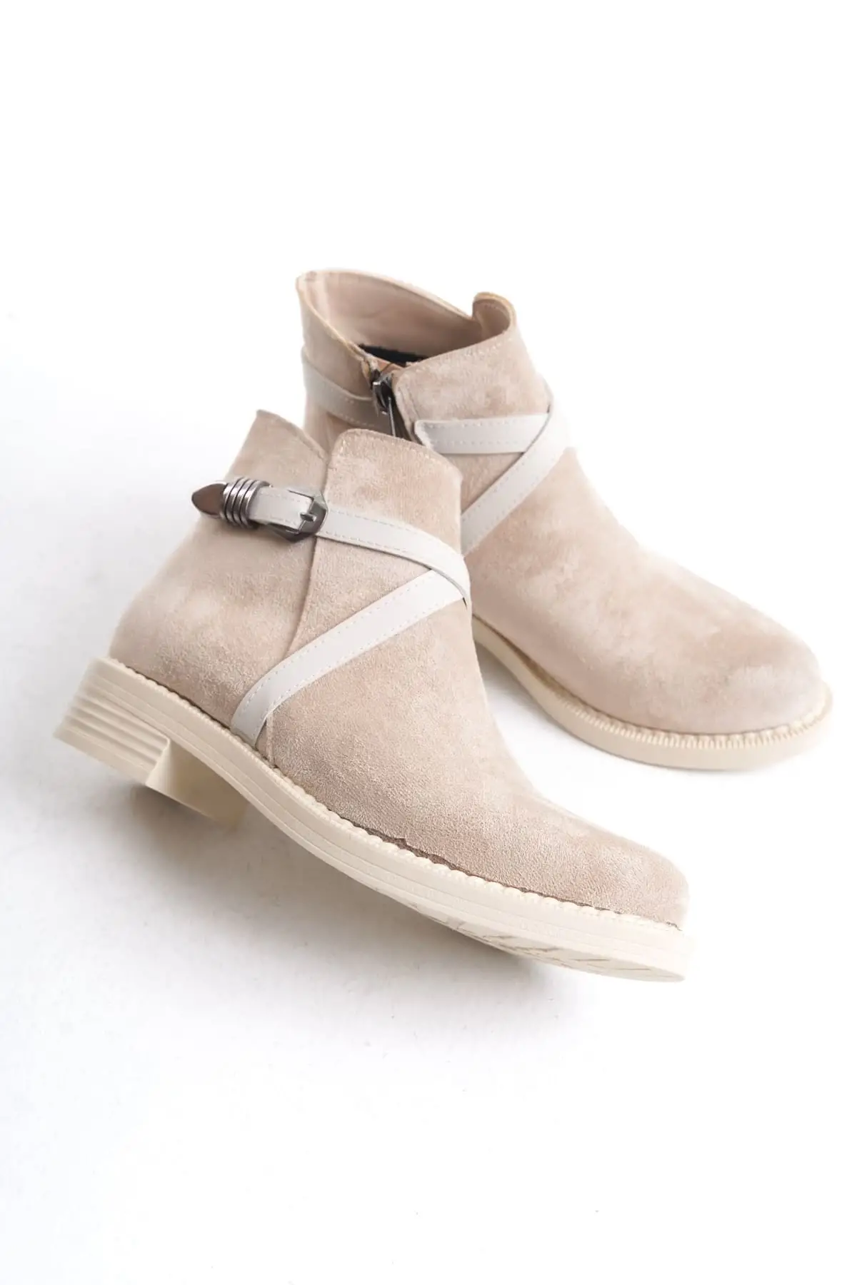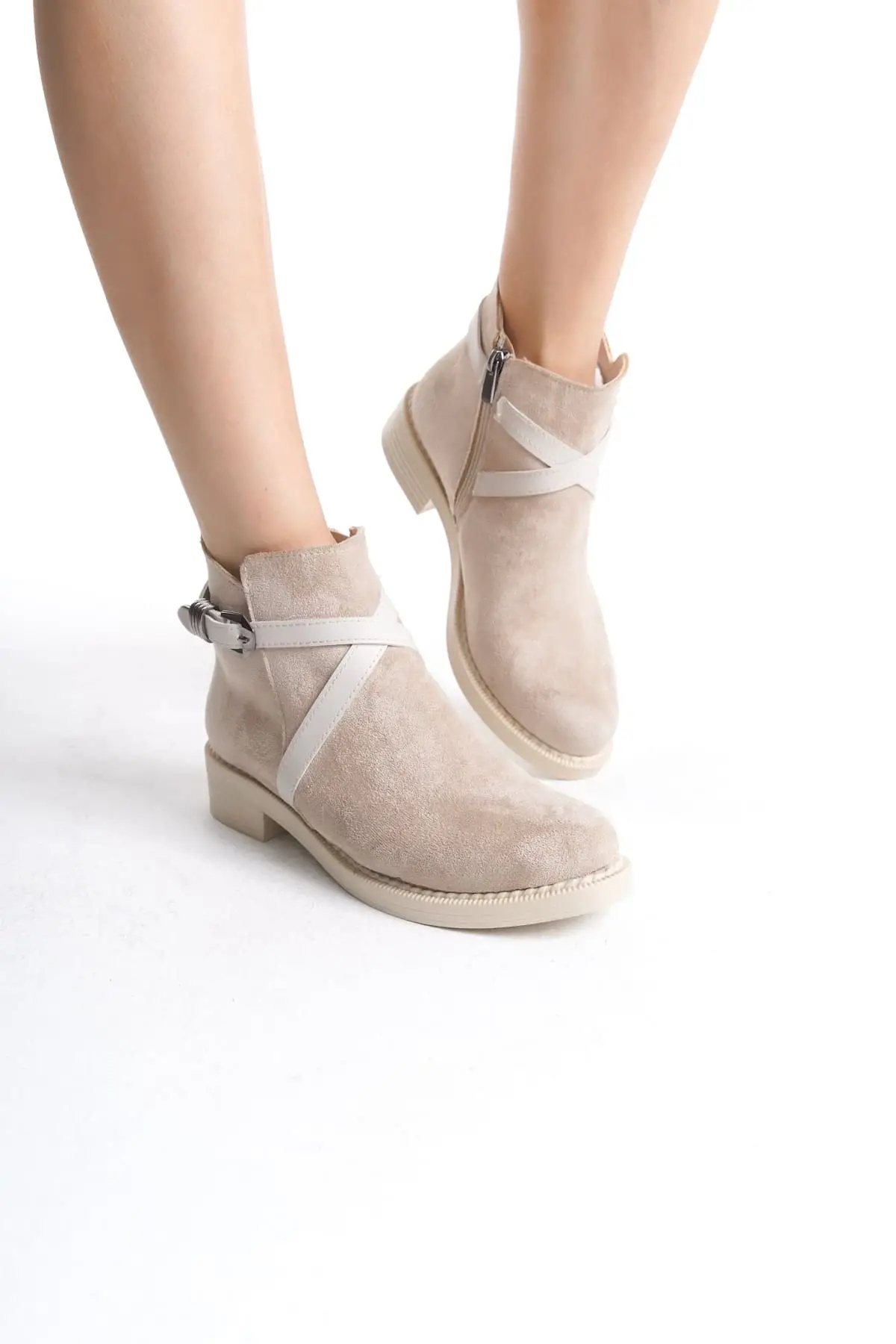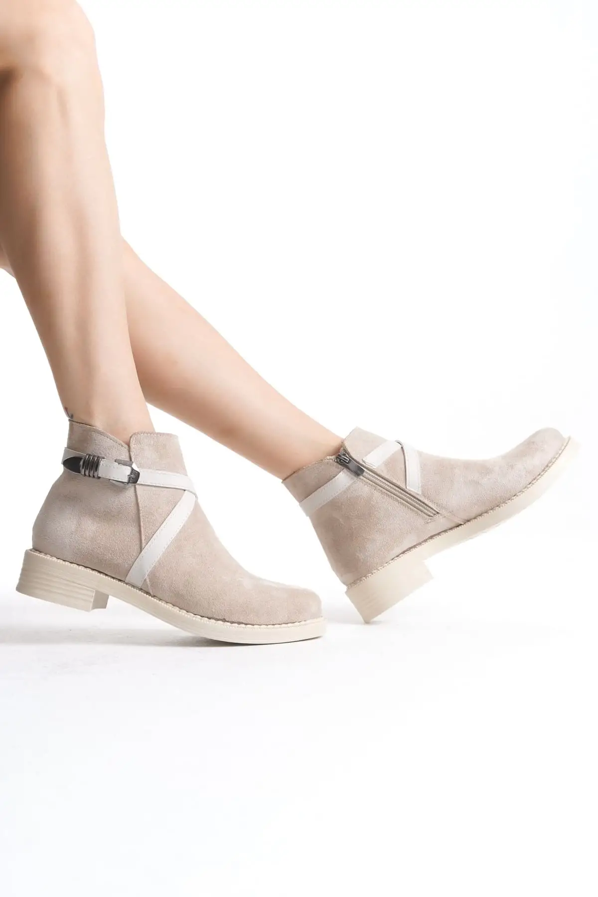 Almıla Fermuarlı Lastikli Ortopedik Taban Topuklu Süet Kadın Bot Tt - Ten