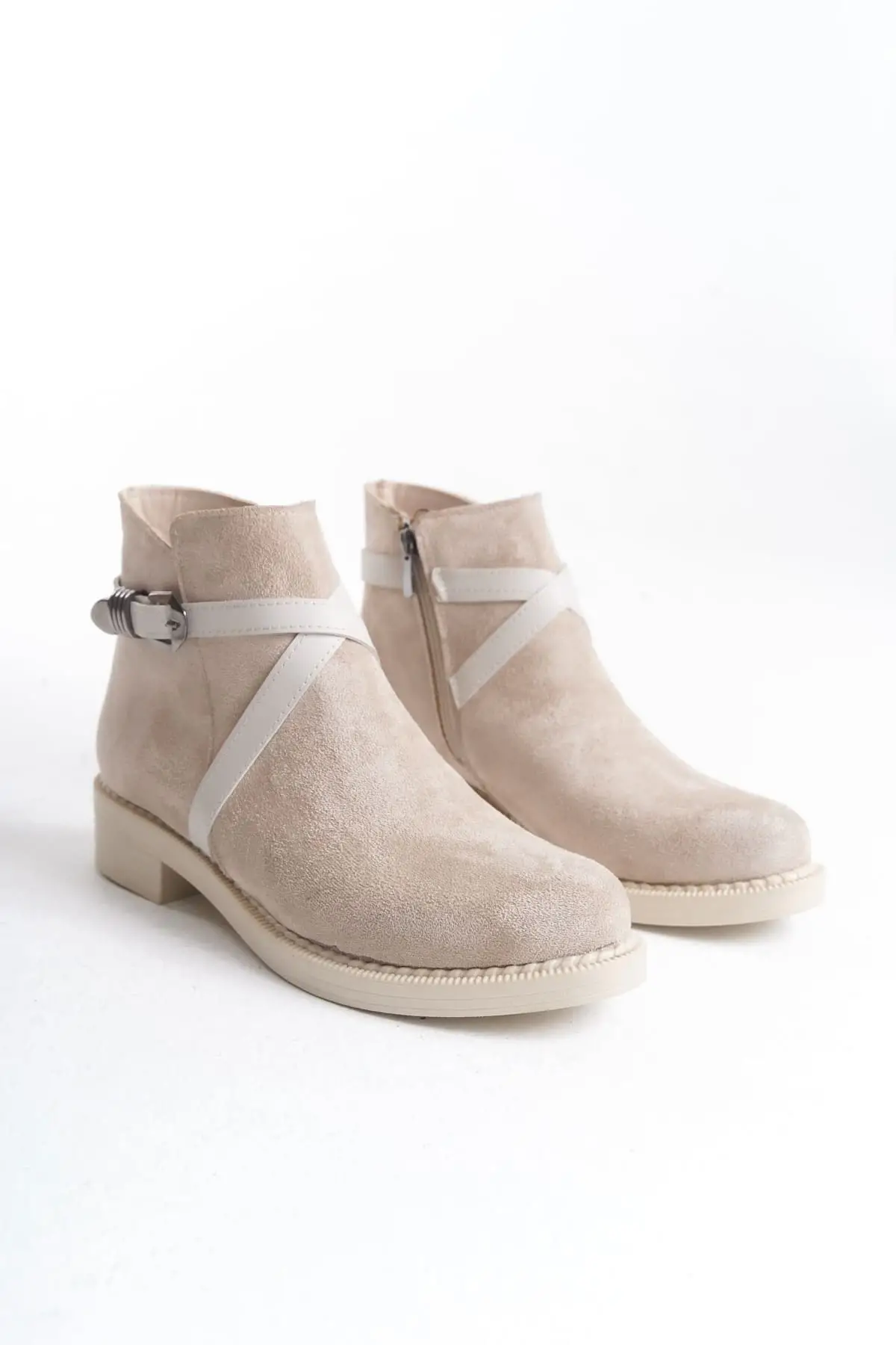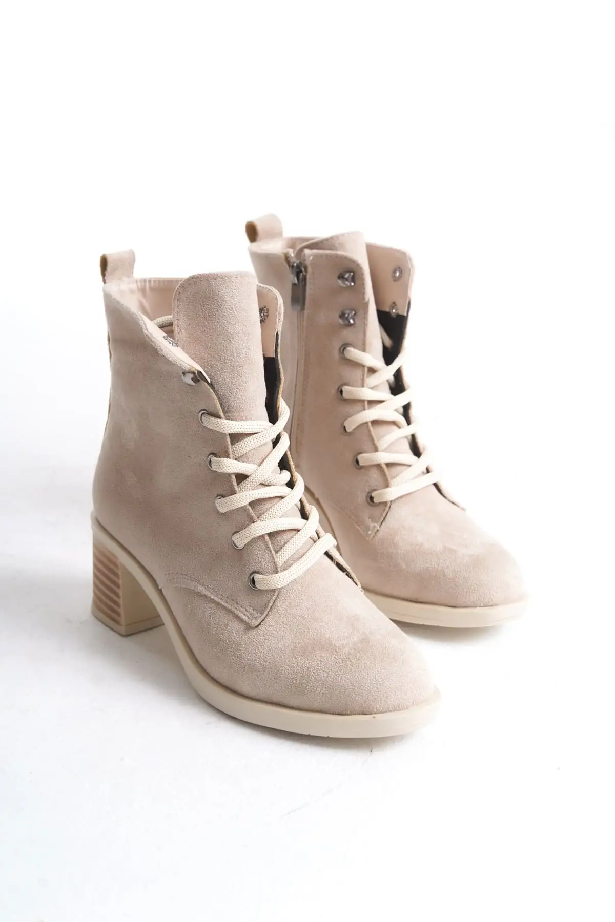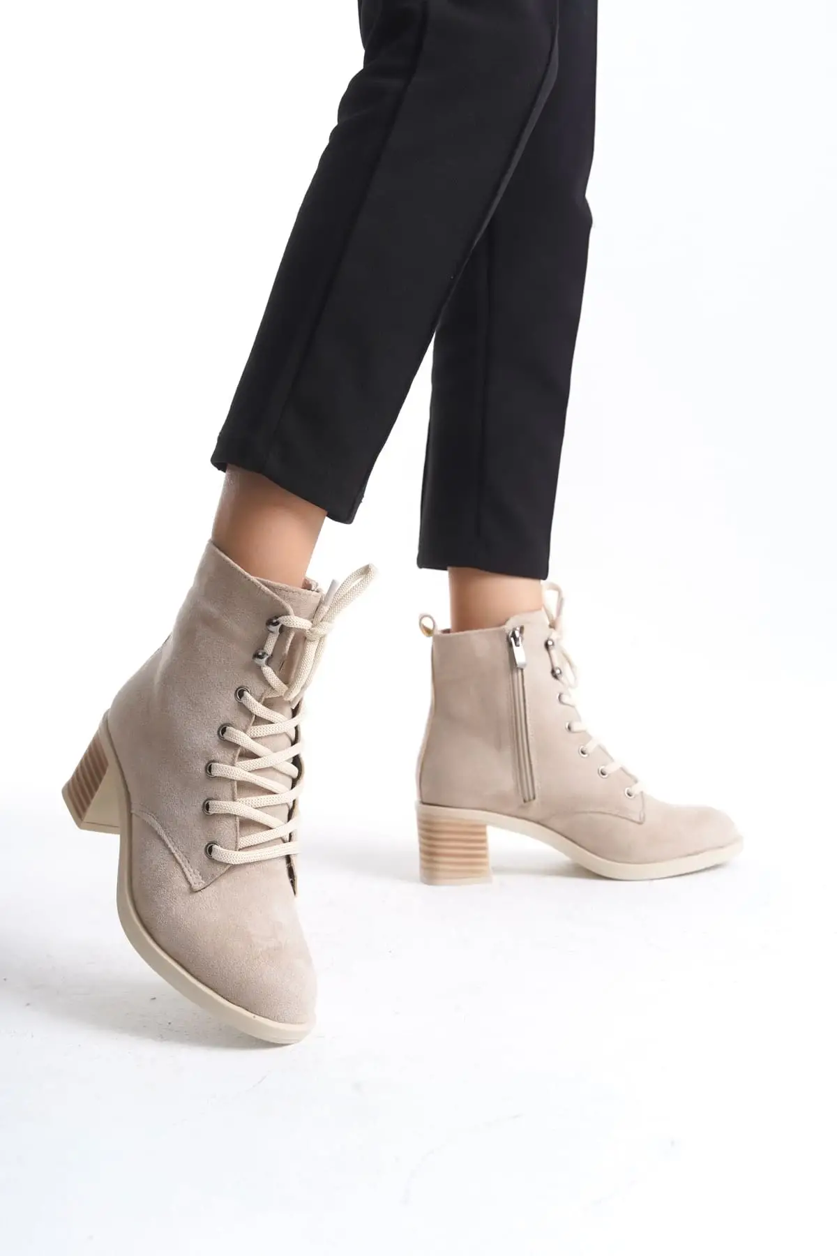Lena Bağcıklı Fermuarlı Ortopedik Taban Topuklu Süet Kadın Bot Tt - Ten