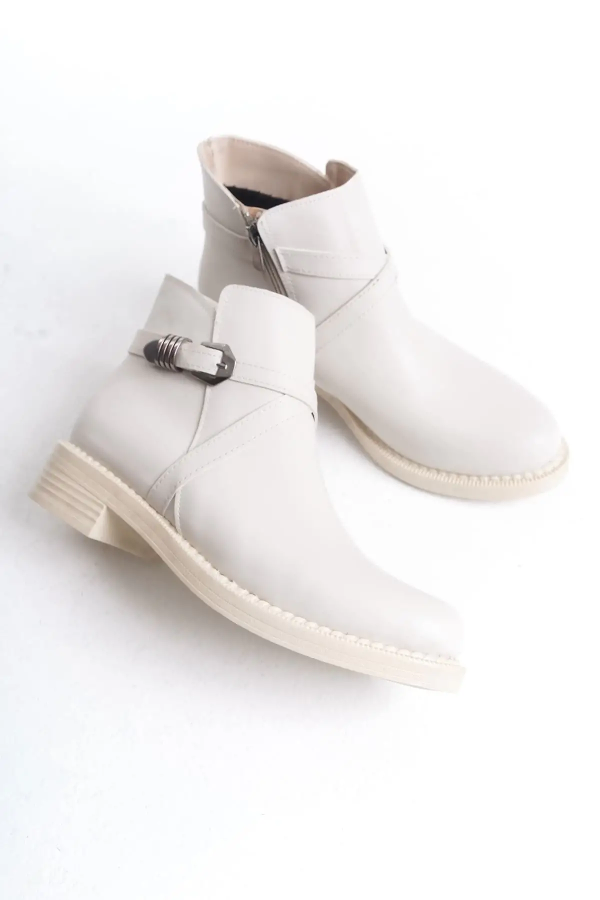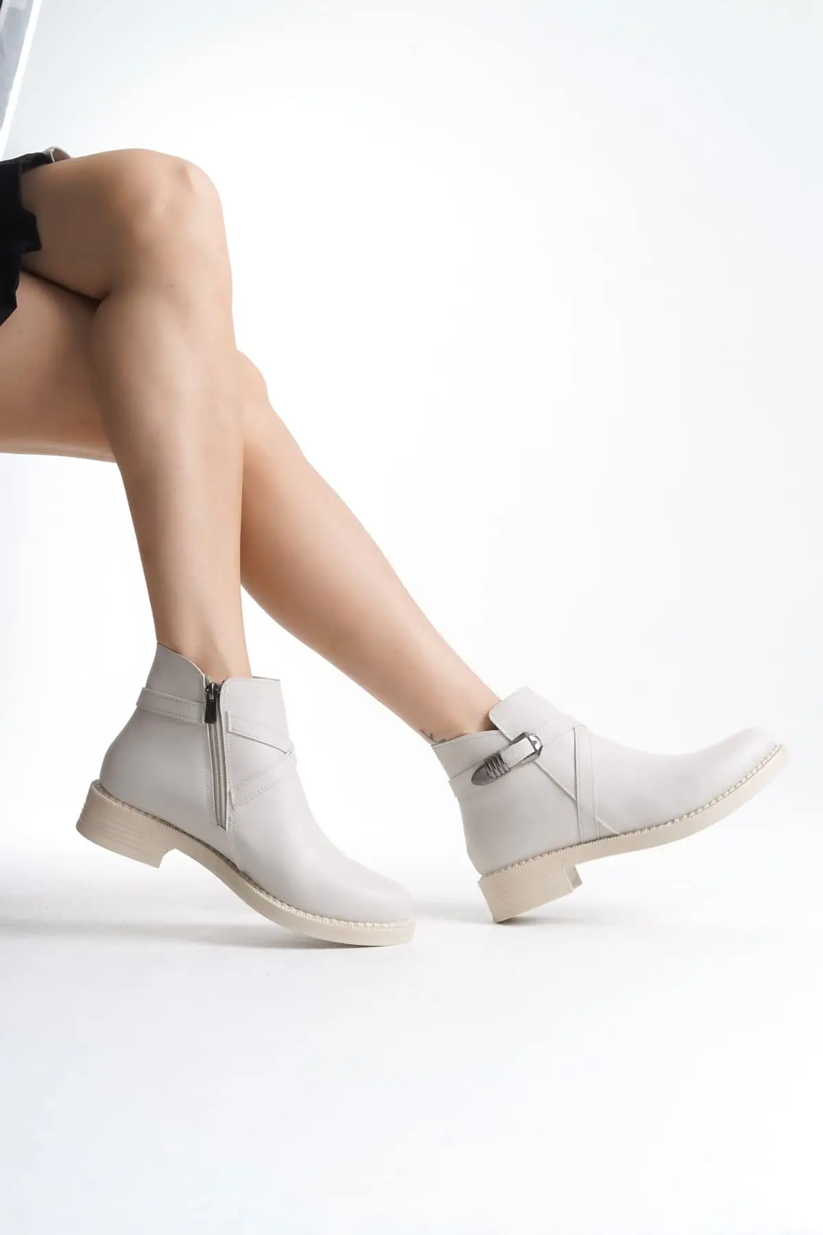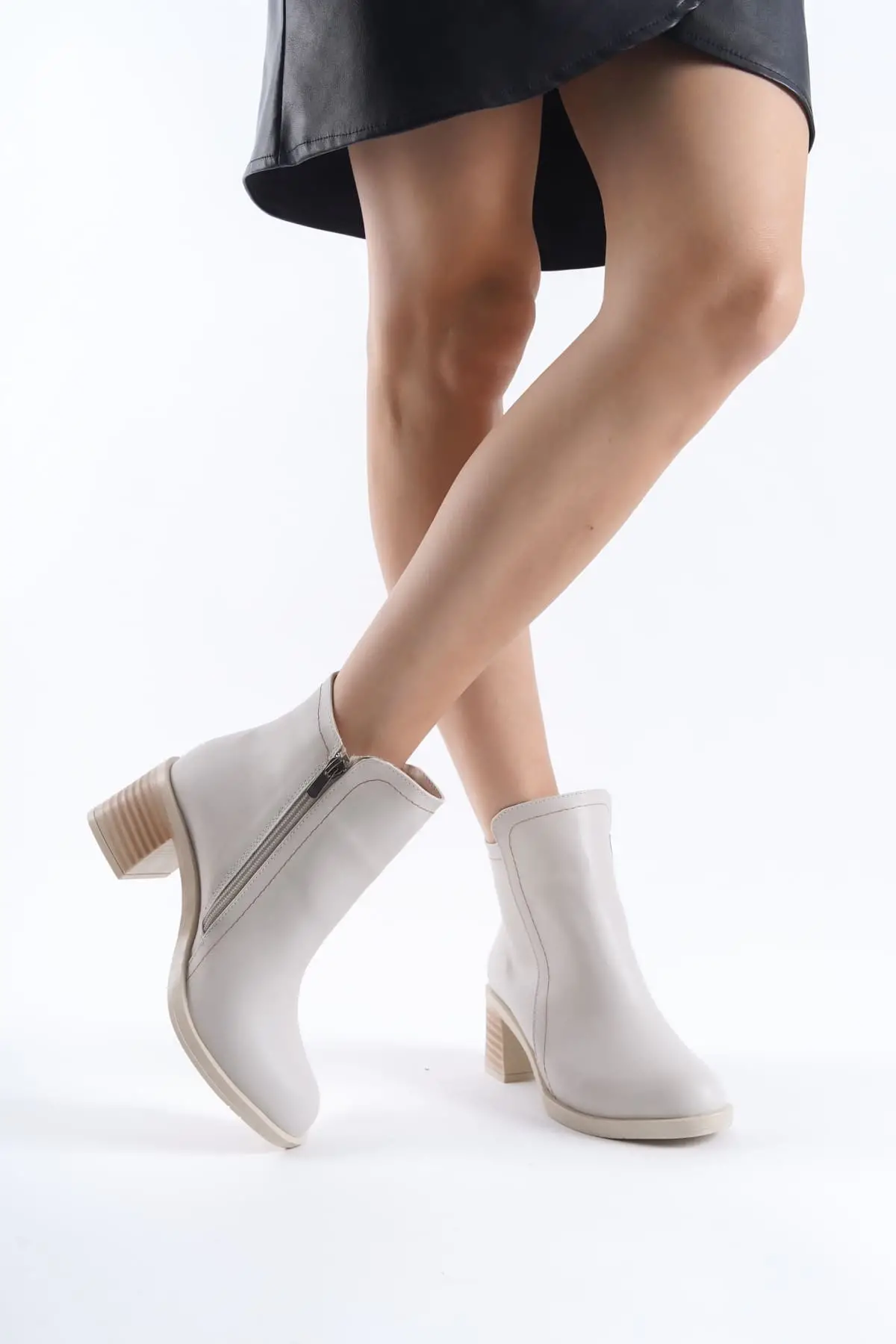 Almıla Fermuarlı Lastikli Ortopedik Taban Topuklukadın Bot Kt - Krem