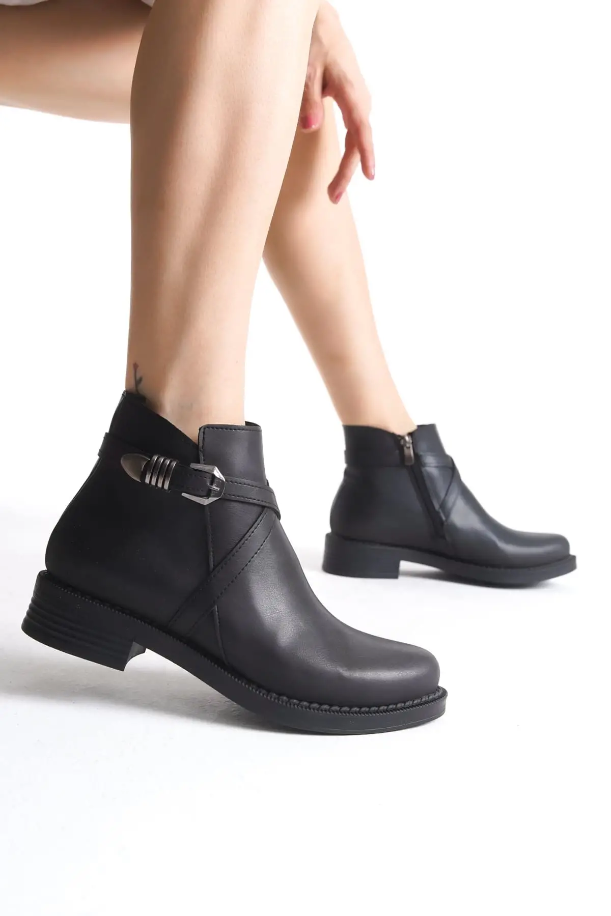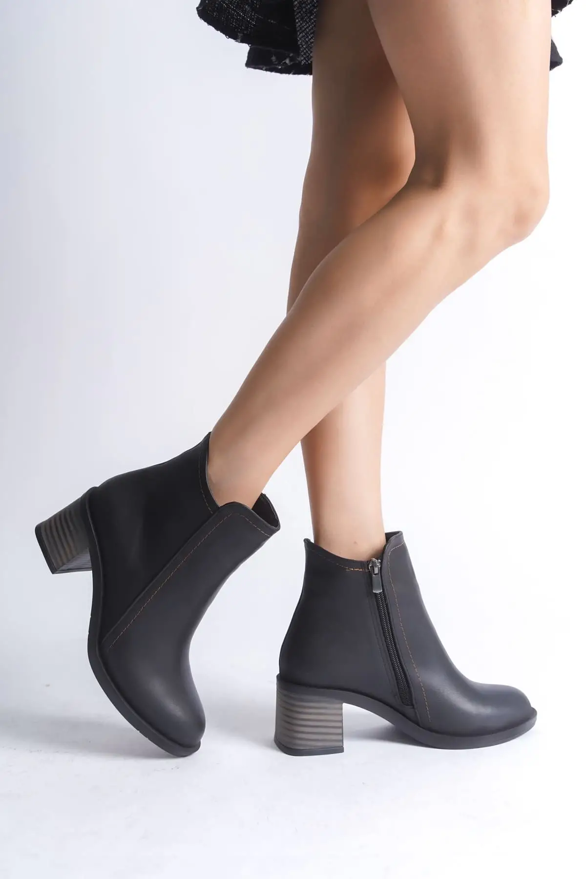 Larıssa Fermuarlı Ortopedik Taban Topuklukadın Bot St - Siyah