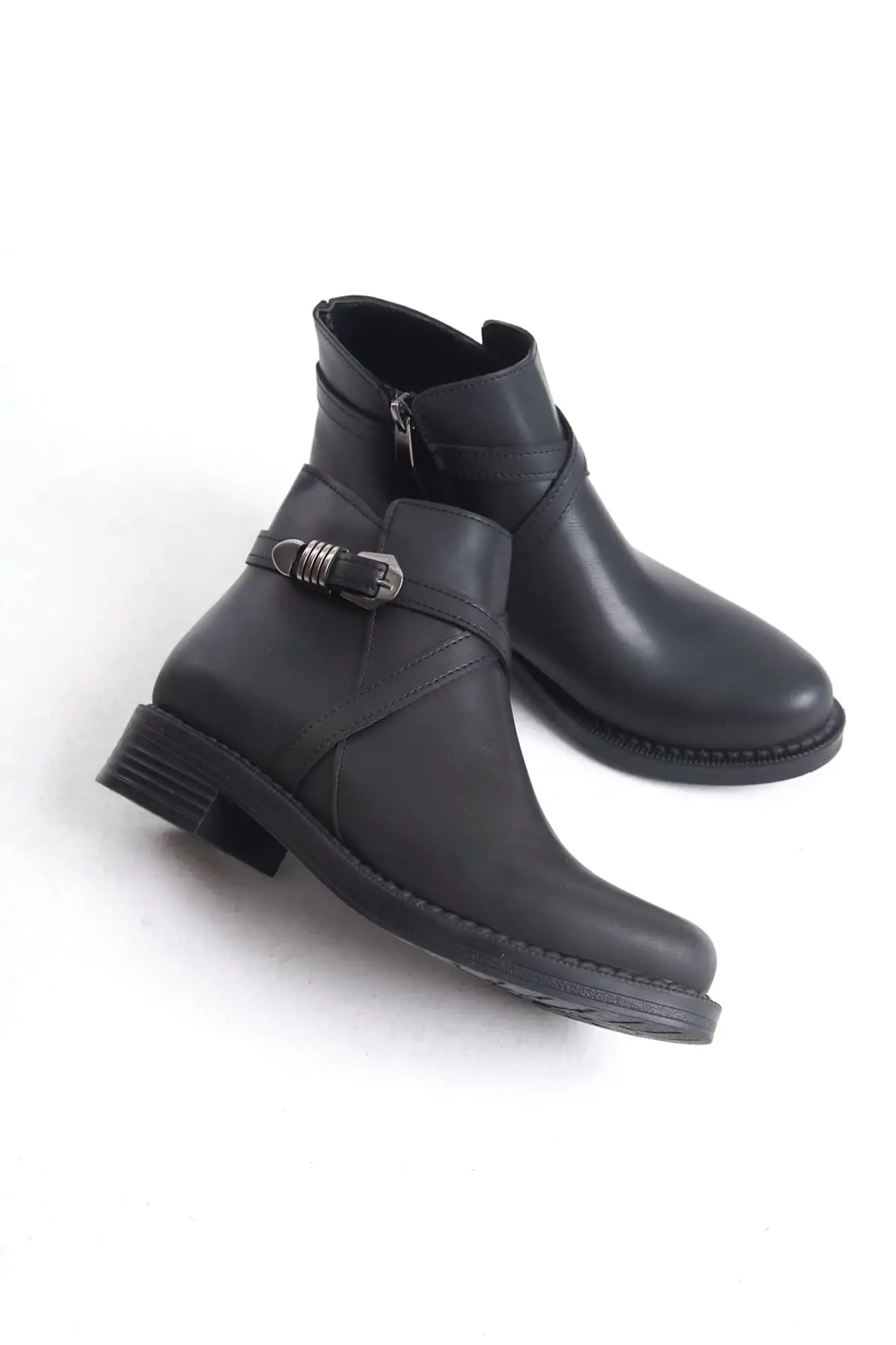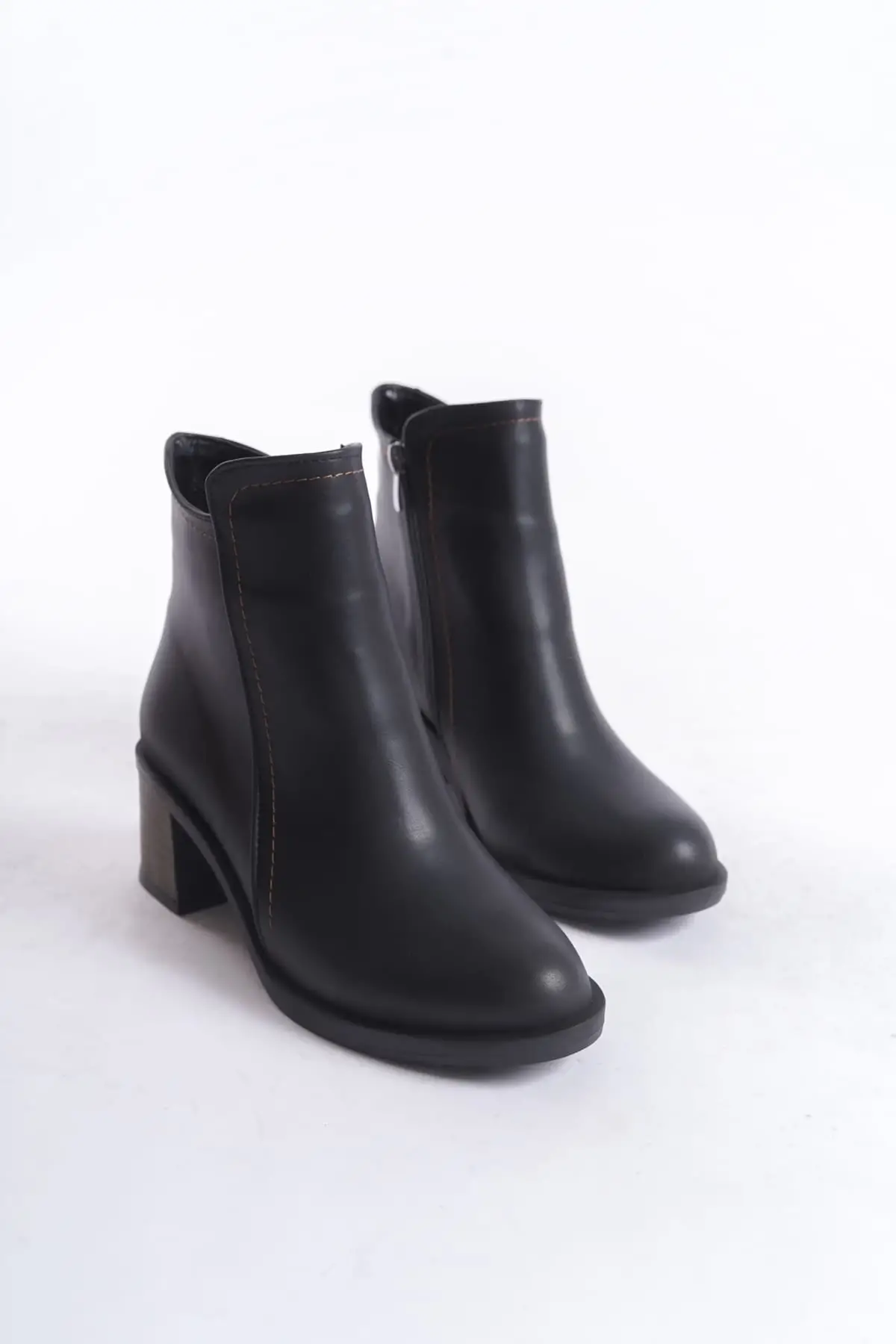 Almıla Fermuarlı Lastikli Ortopedik Taban Topuklukadın Bot St - Siyah