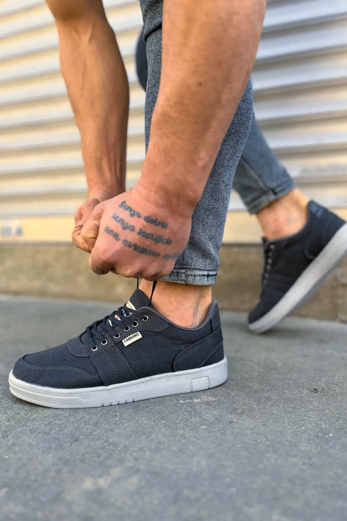 Tb0118 Rex Bağcıklı Keten Kumaş Erkek Günlük Sneaker Ayakkabı Kbt - Lacivert