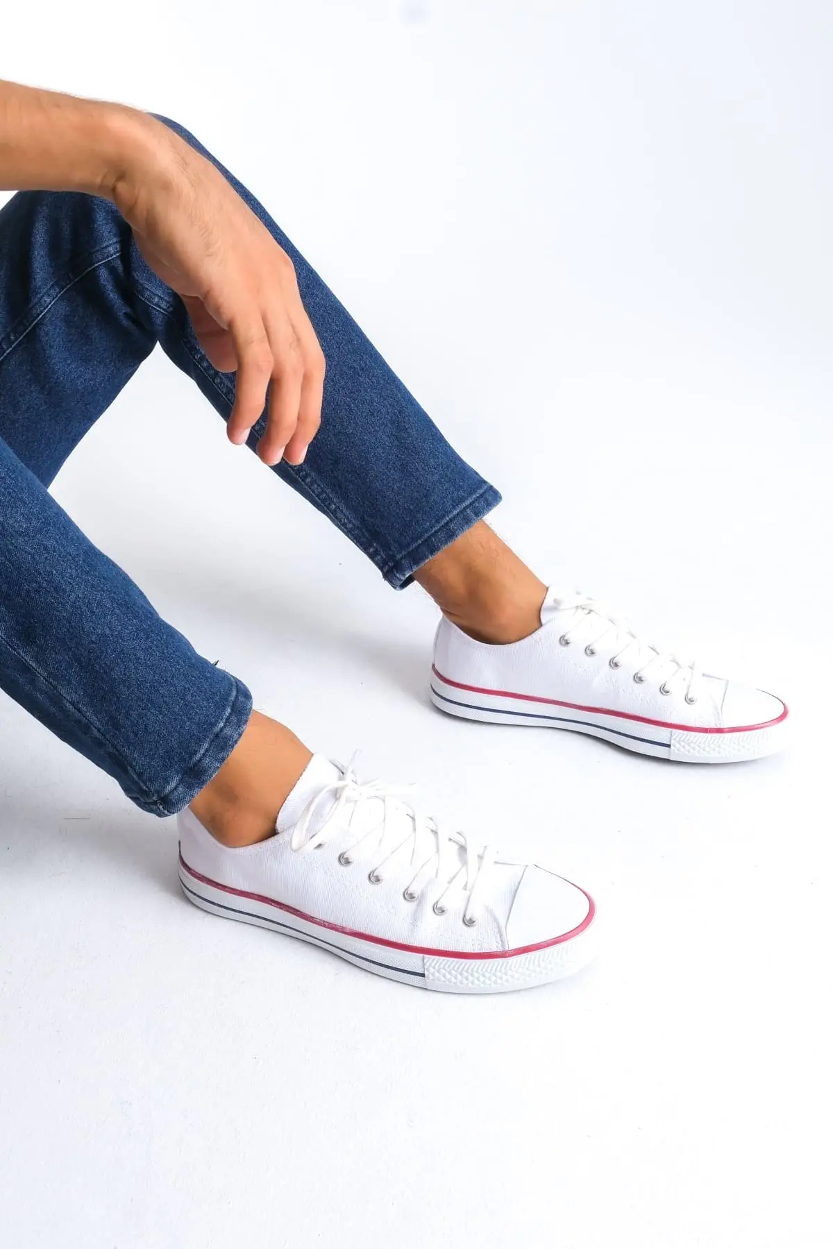 Tb0422 Luke Bağcıklı Keten Kumaş Erkek Günlük Sneaker Ayakkabı Kbt - Beyaz