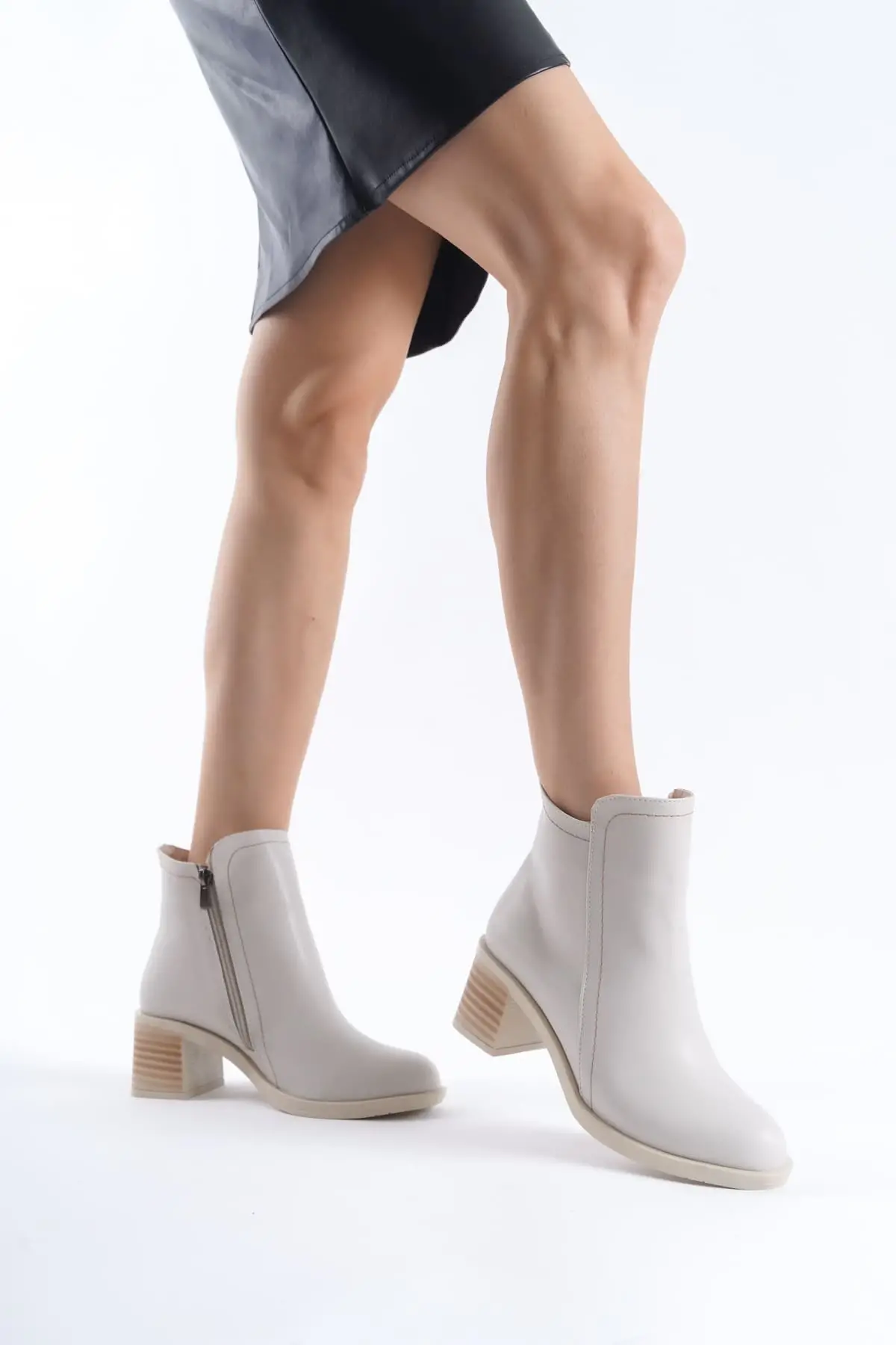 Larıssa Fermuarlı Ortopedik Taban Topuklukadın Bot Kt - Krem