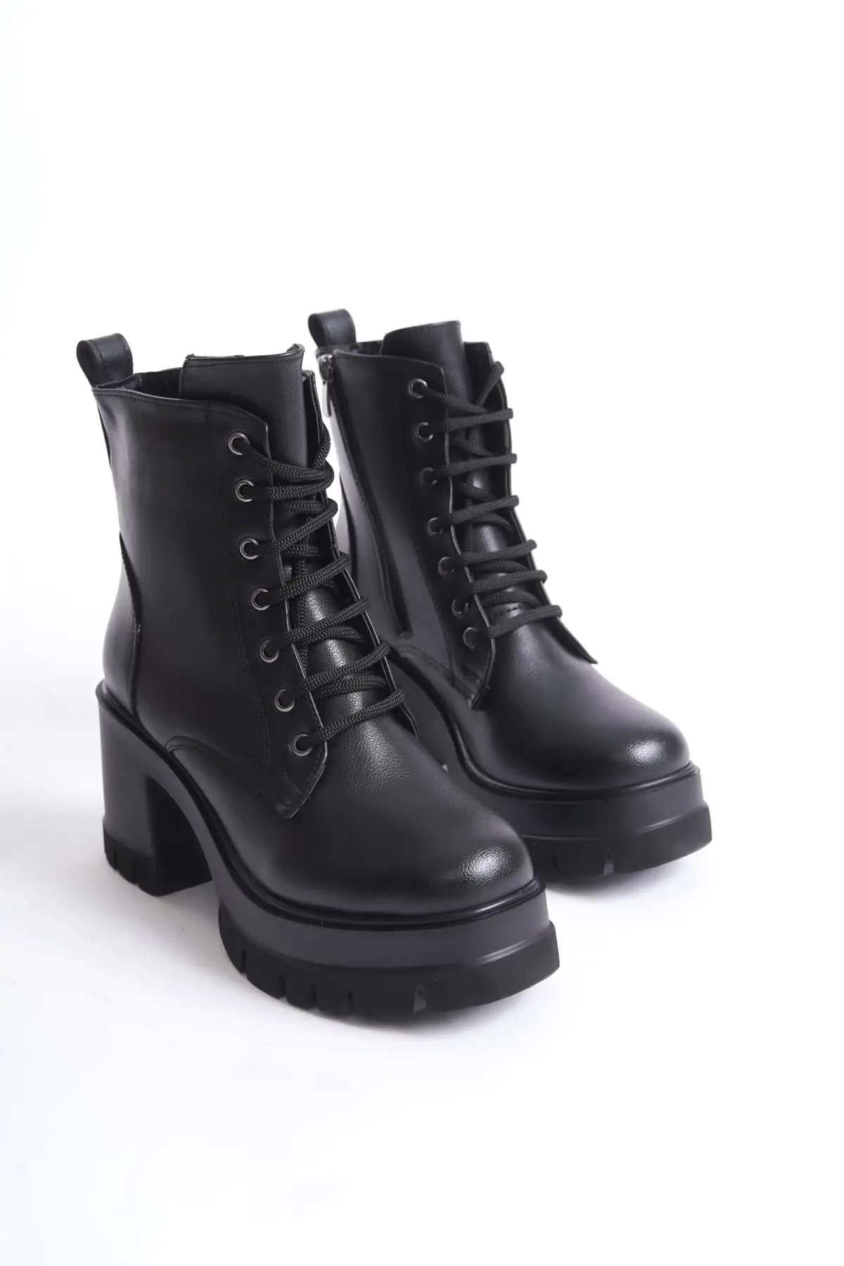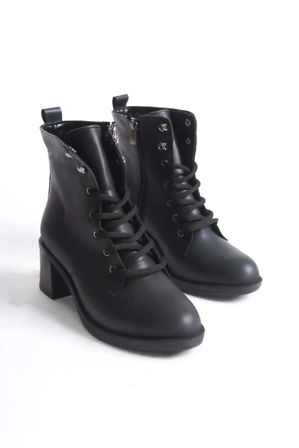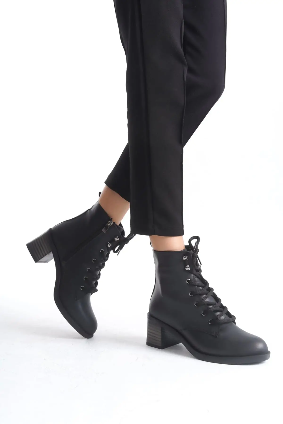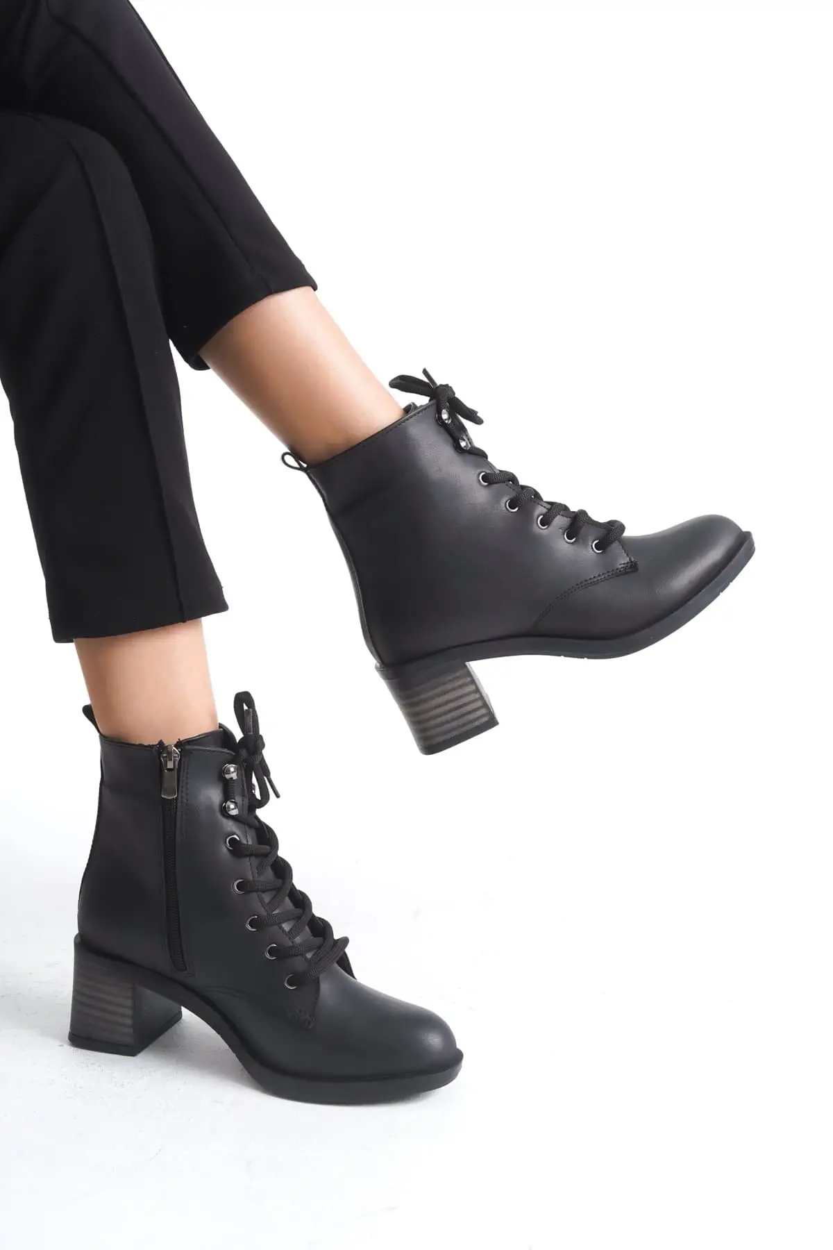 Lena Bağcıklı Fermuarlı Ortopedik Taban Topuklukadın Bot St - Siyah