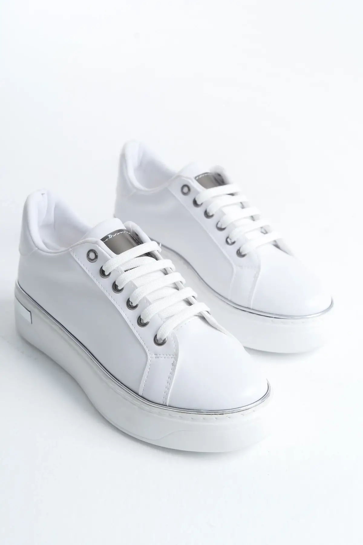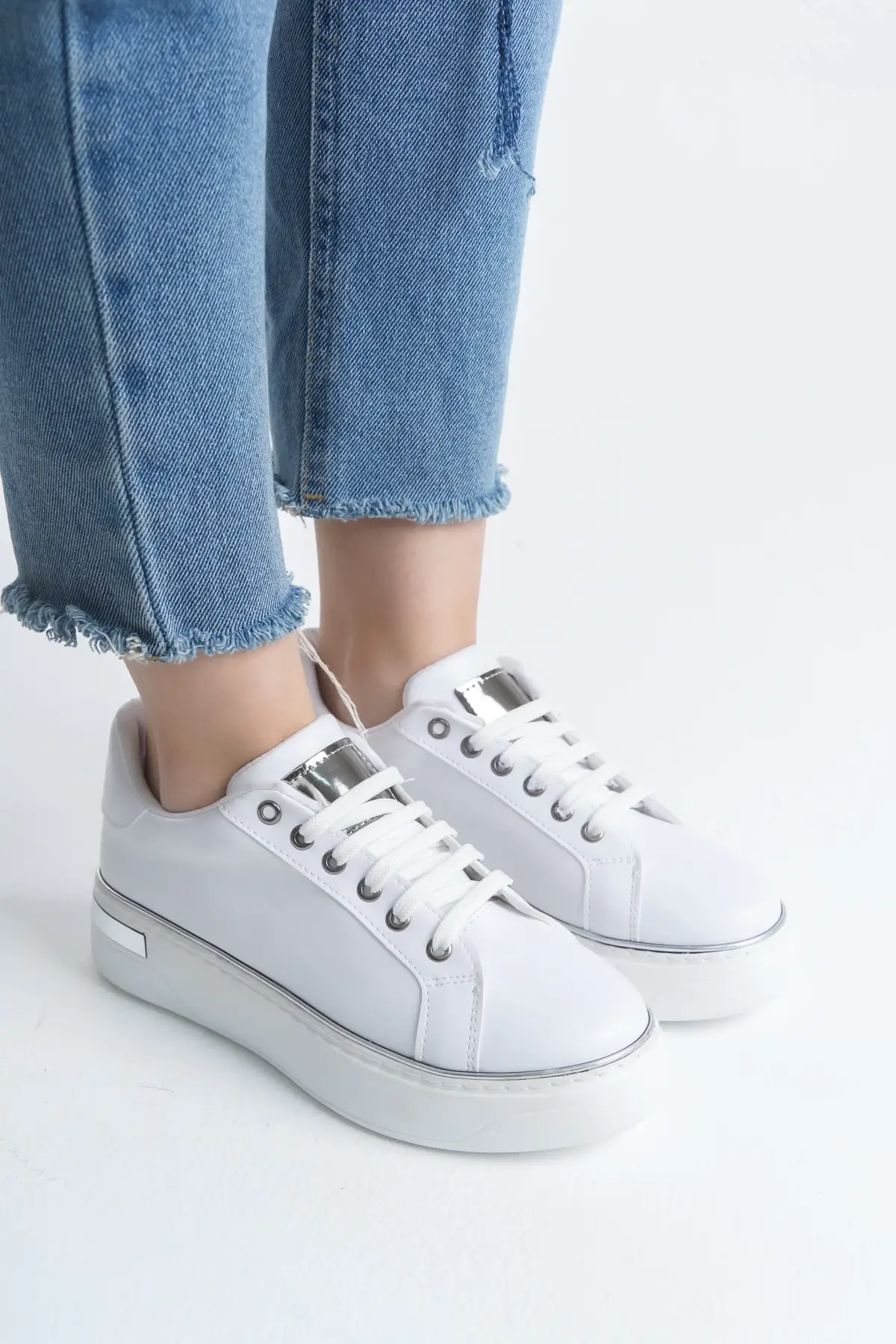 Mına Bağcıklı Ortopedik Taban Kadın Sneaker Spor Ayakkabı Bt - Beyaz/gümüş