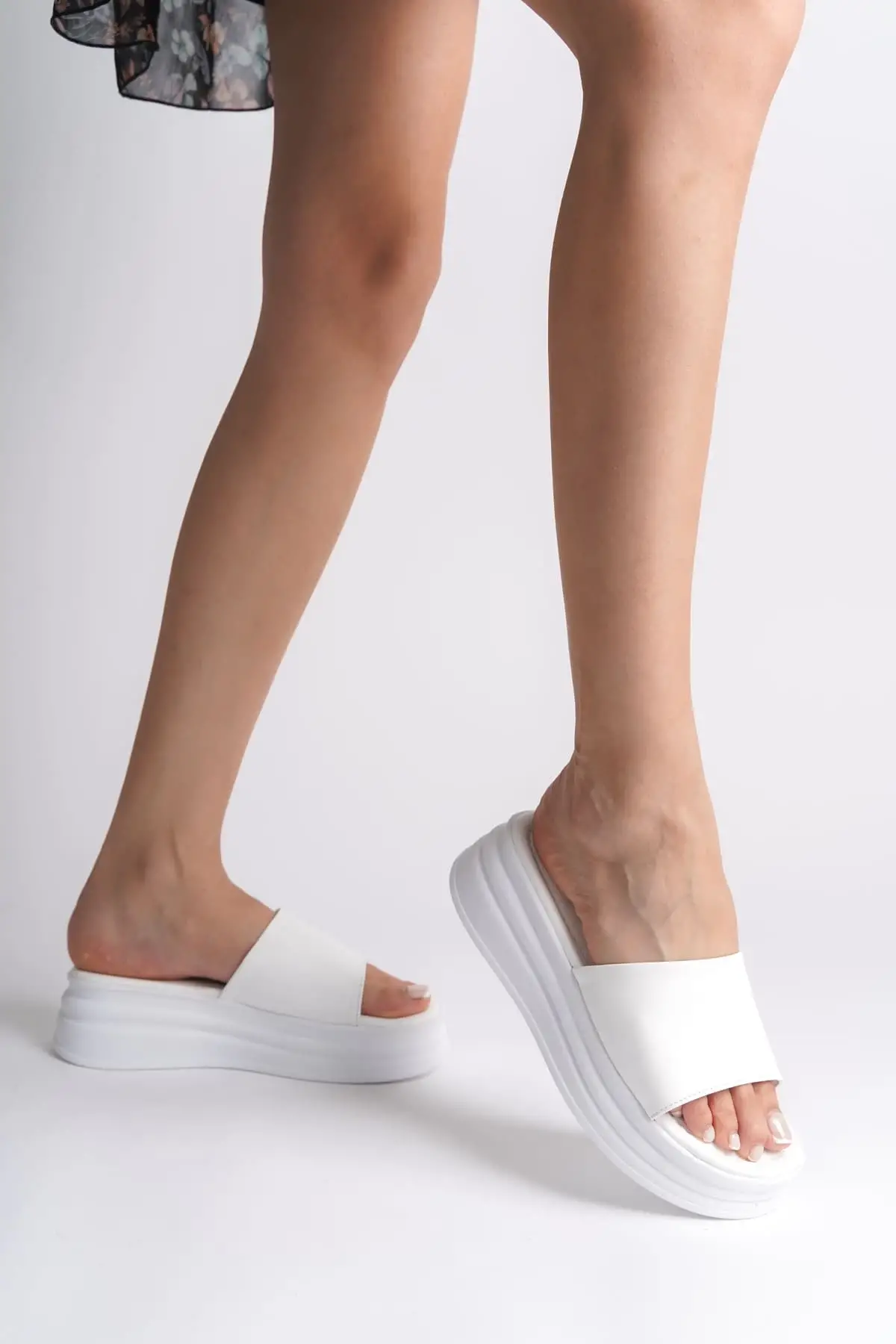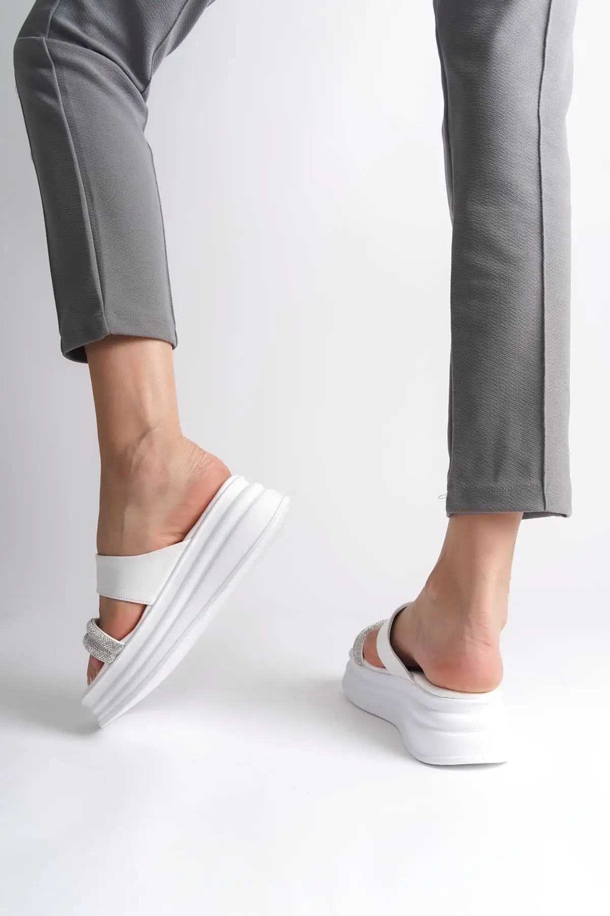 Samantha Bilekten Bağlamalı Ortopedik Taban Kadın Terlik Bt - Beyaz
