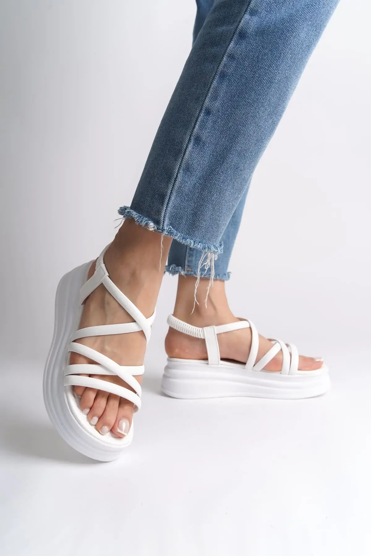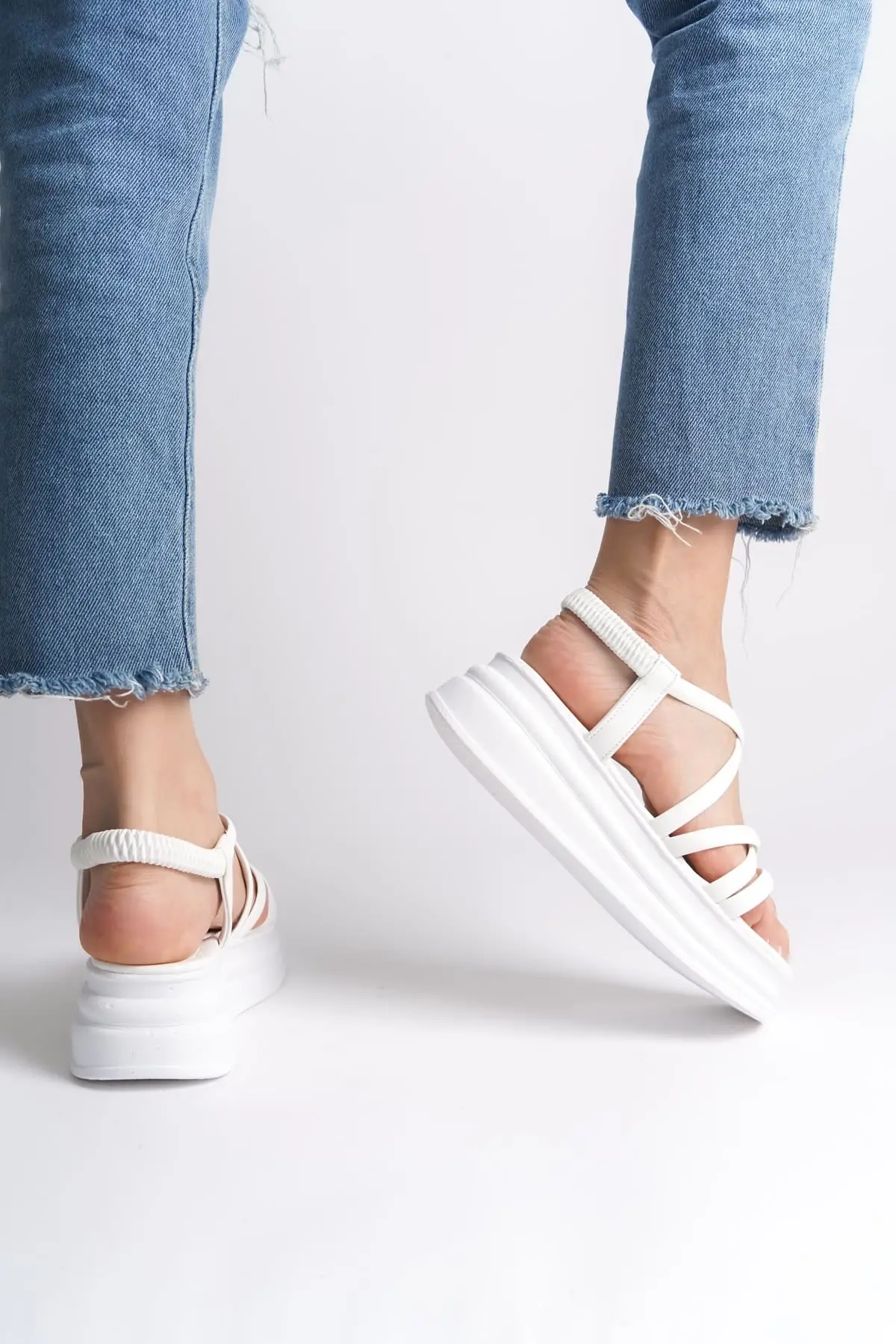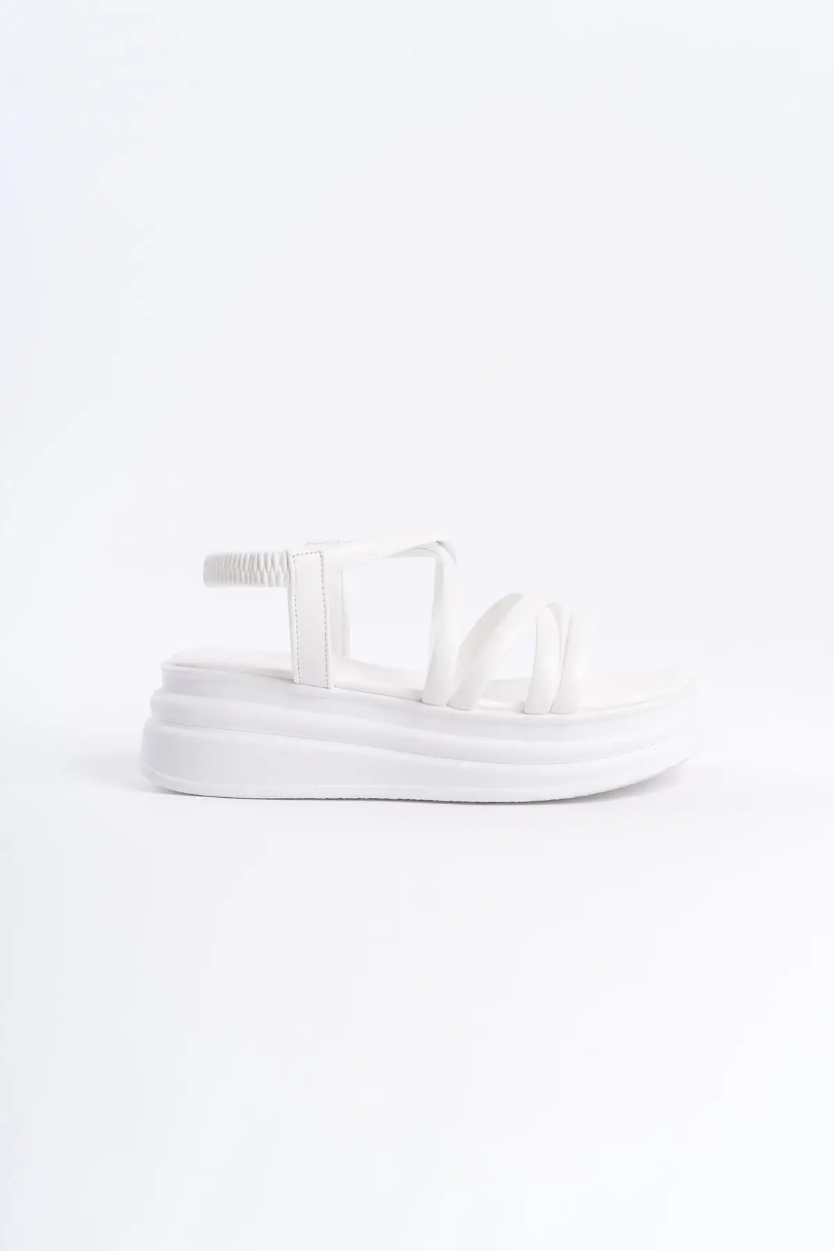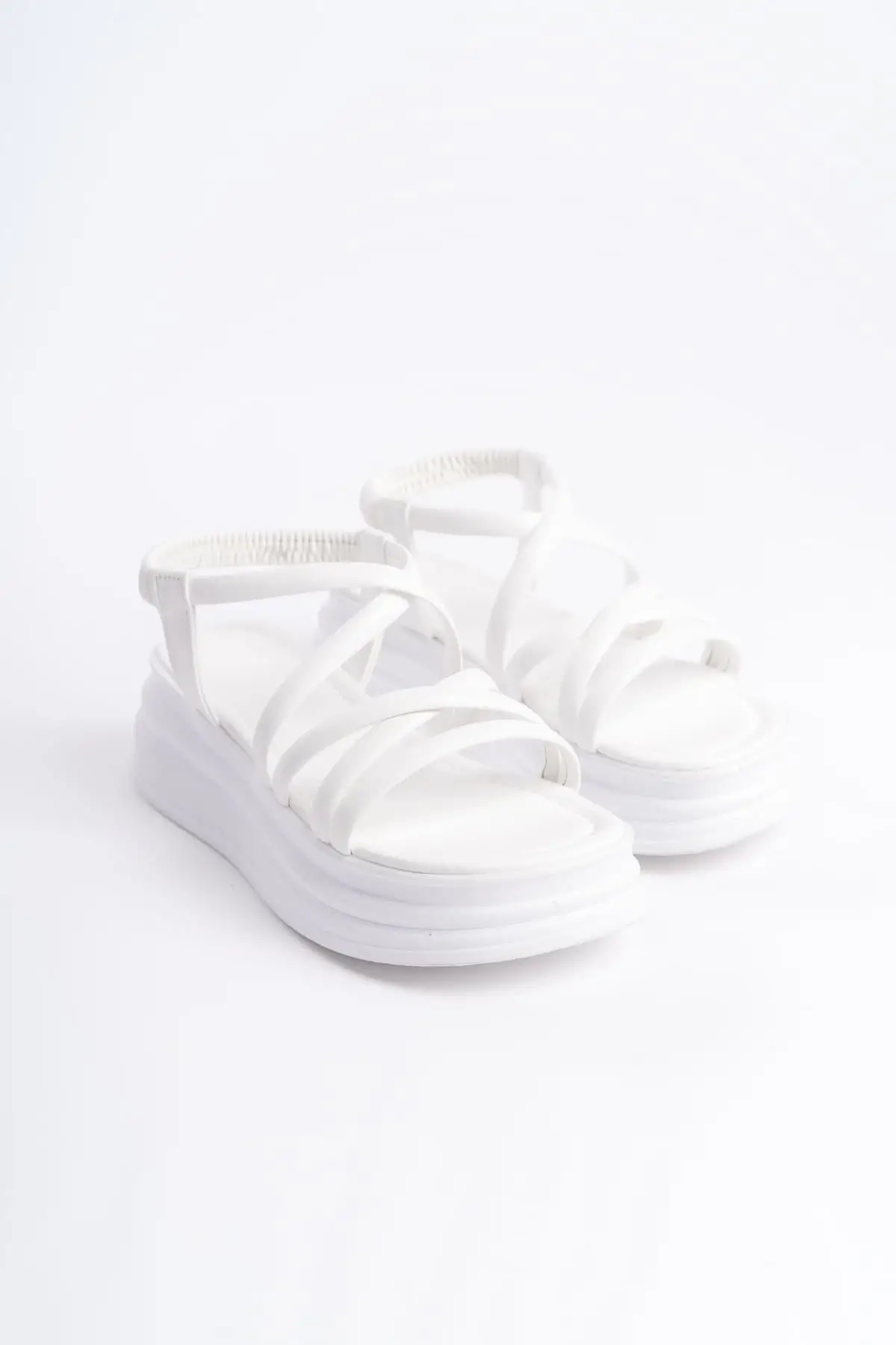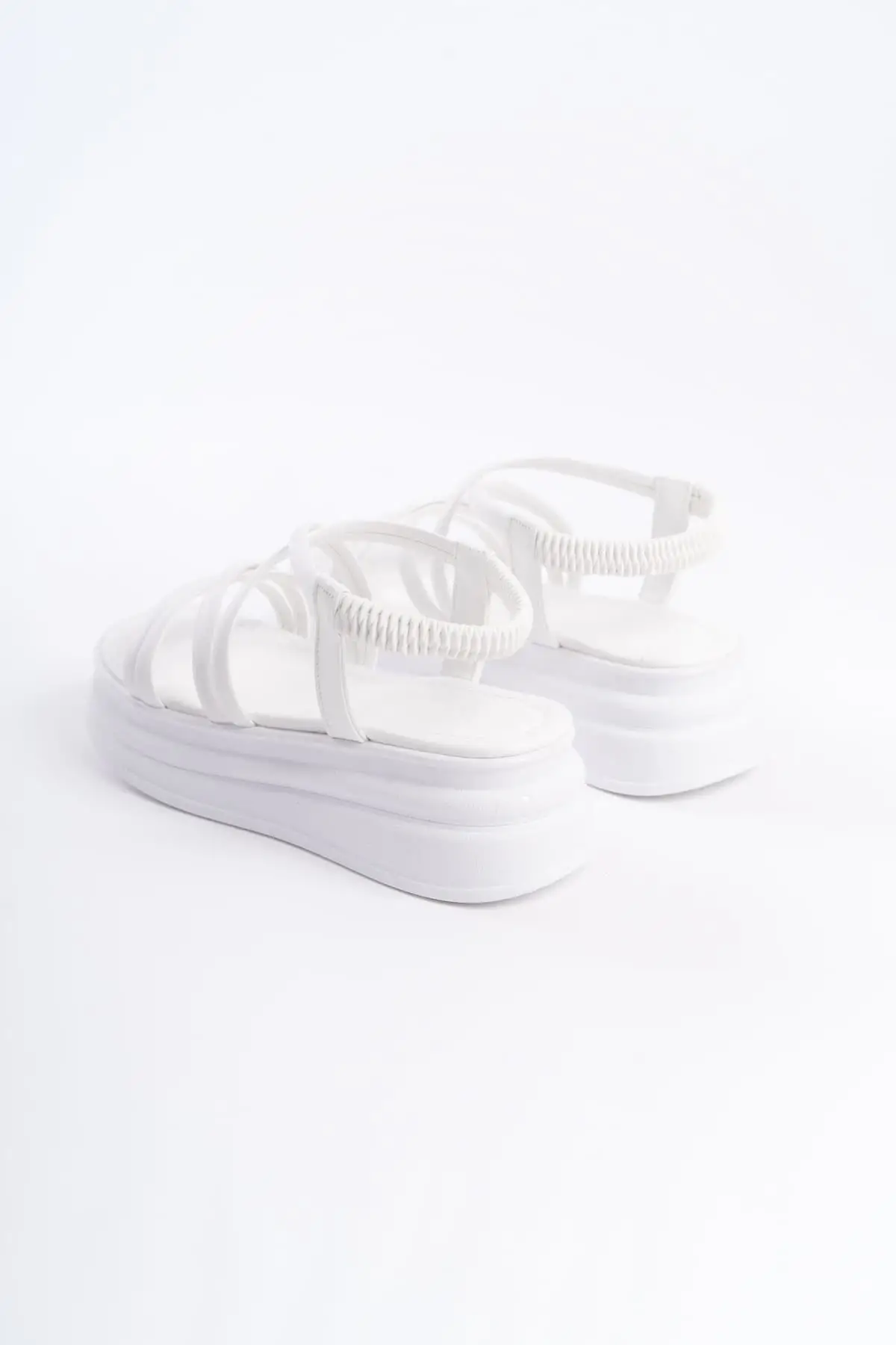 Bella Lastikli Şerit Detaylı Ortopedik Taban Kadın Sandalet Bt - Beyaz