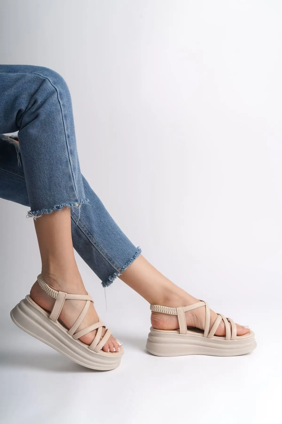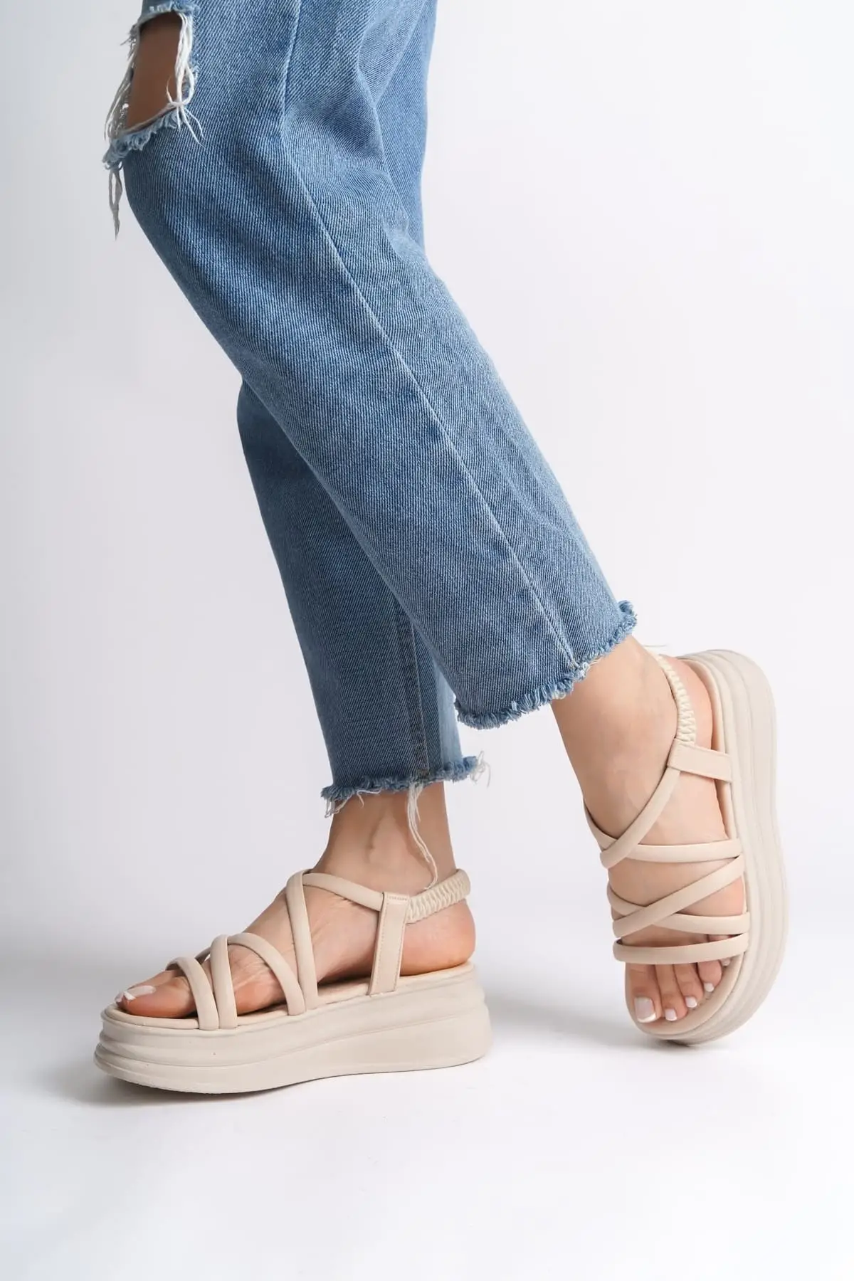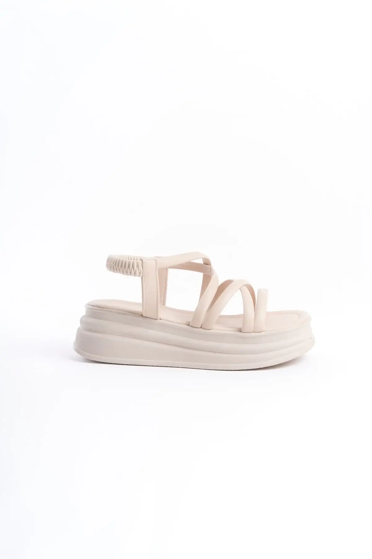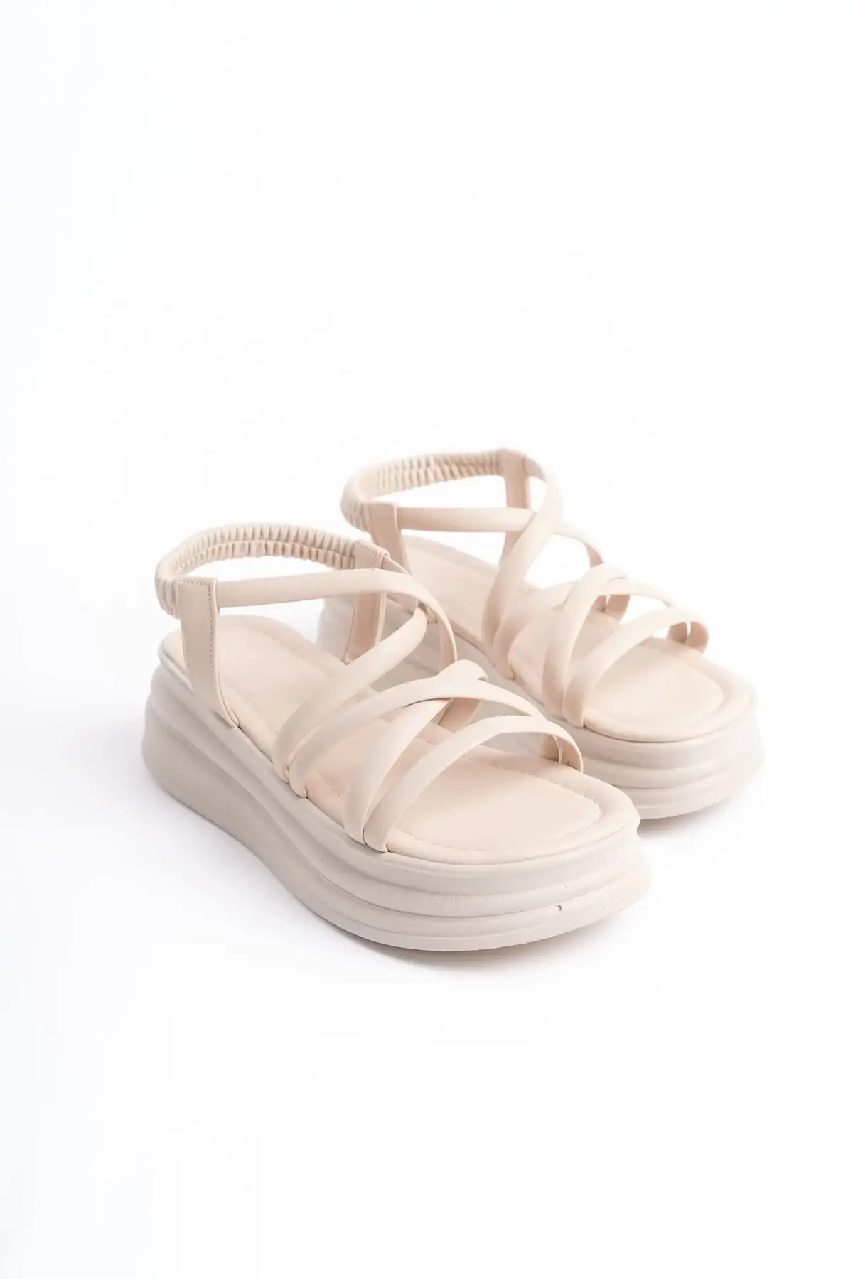 Bella Lastikli Şerit Detaylı Ortopedik Taban Kadın Sandalet Kt - Krem