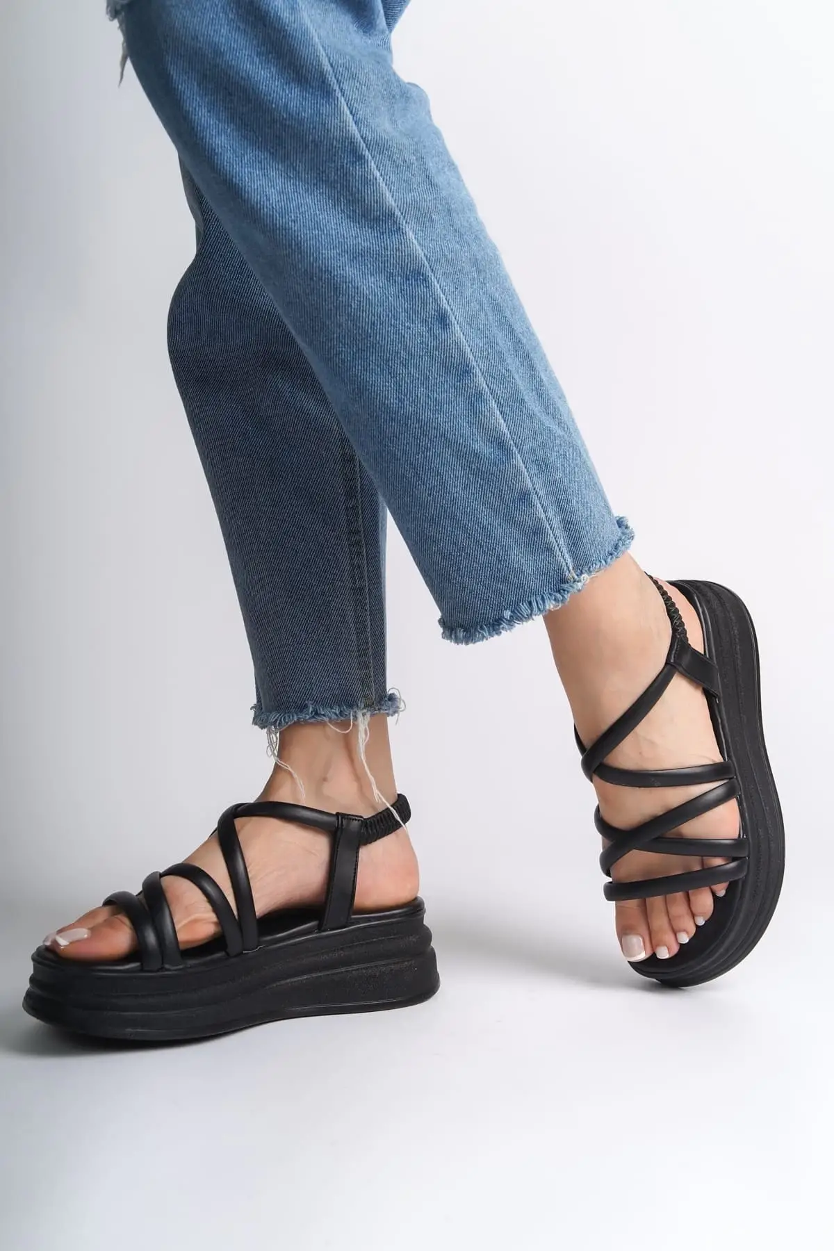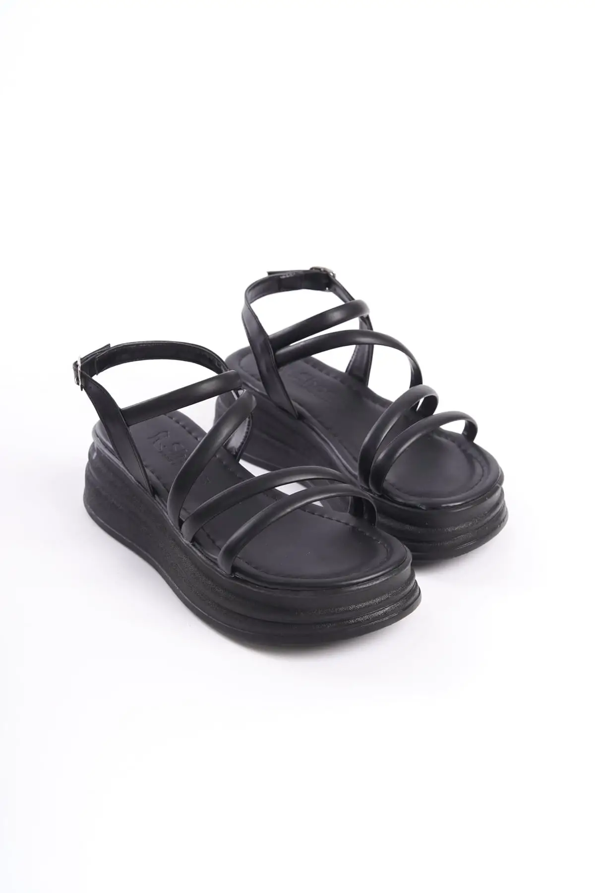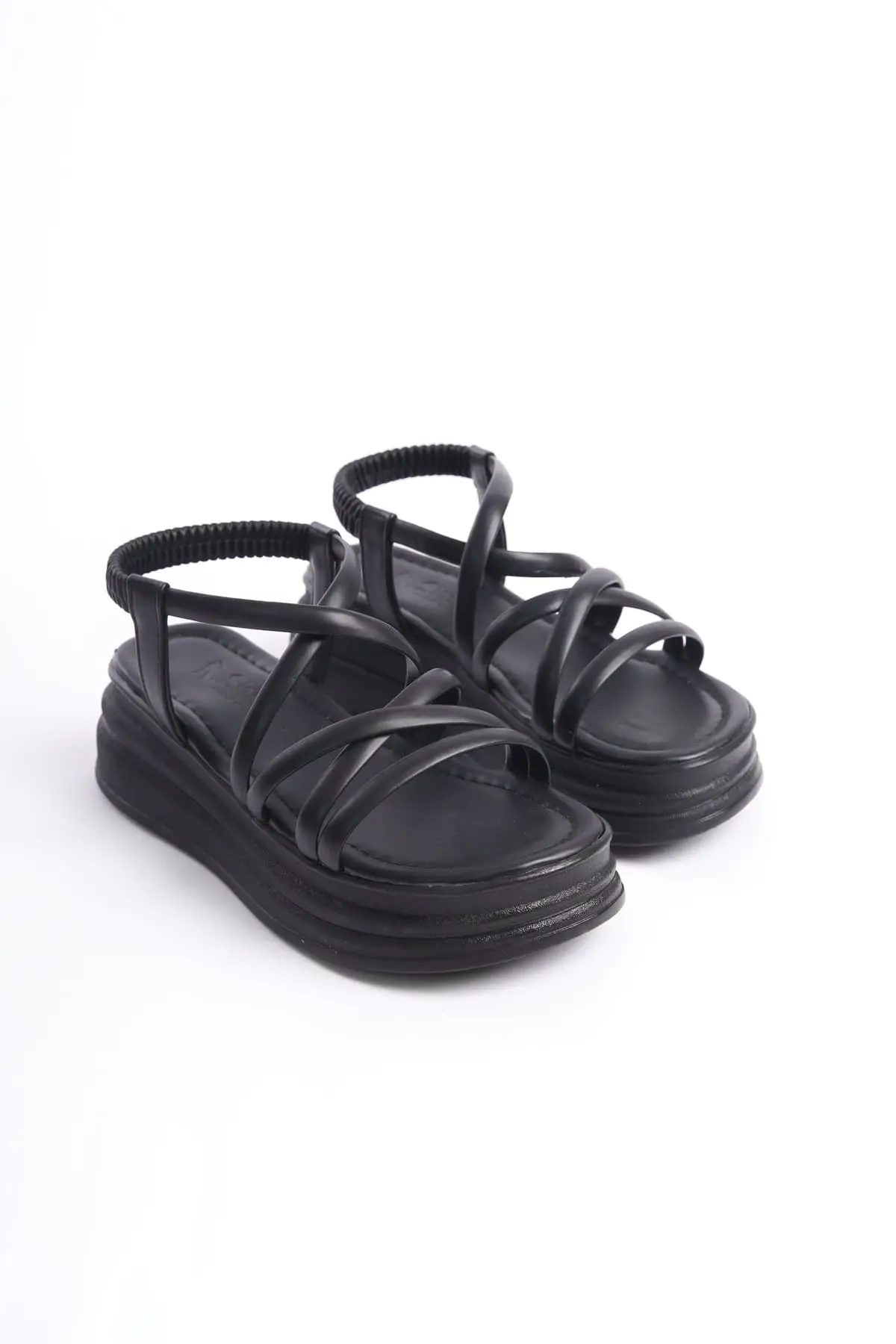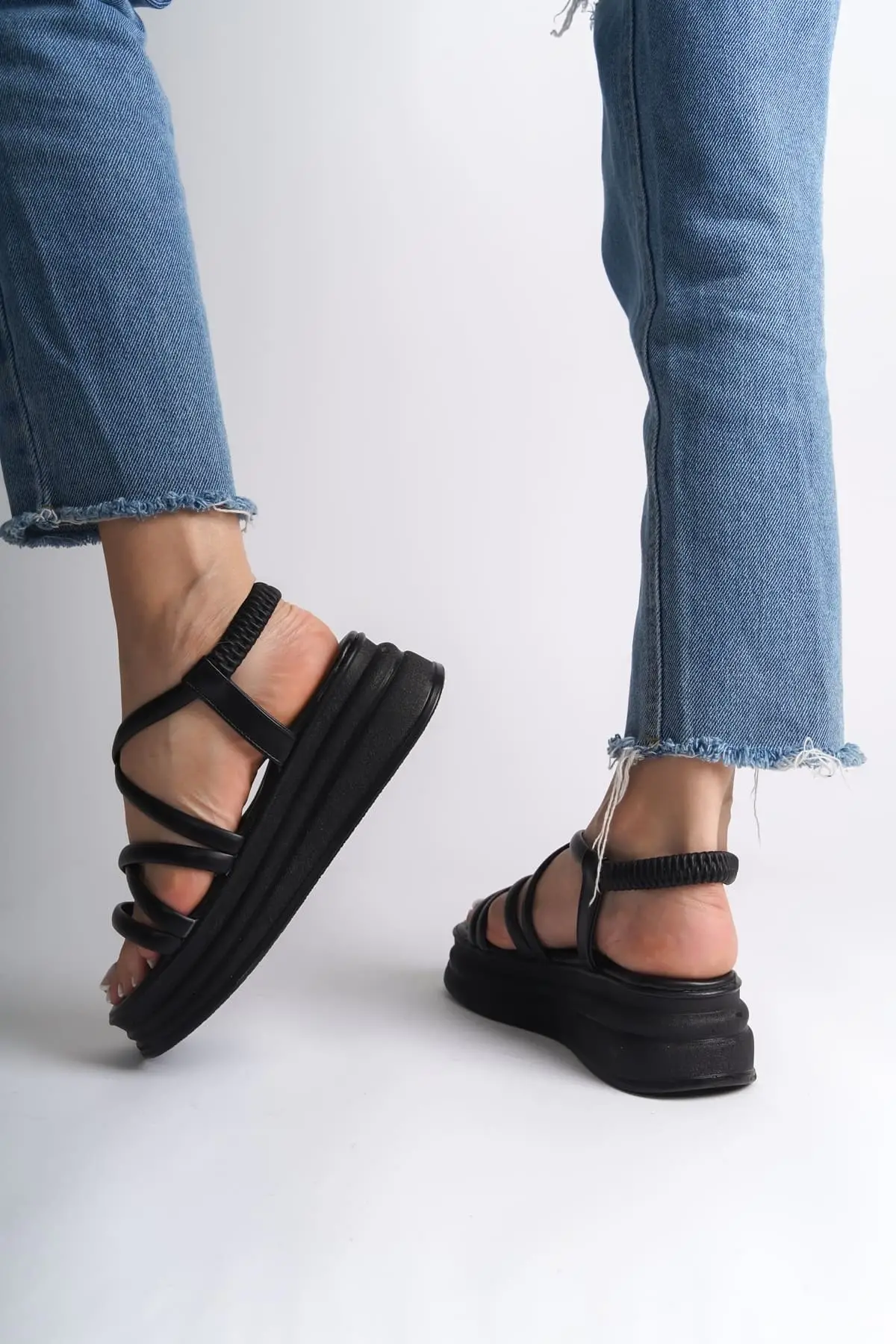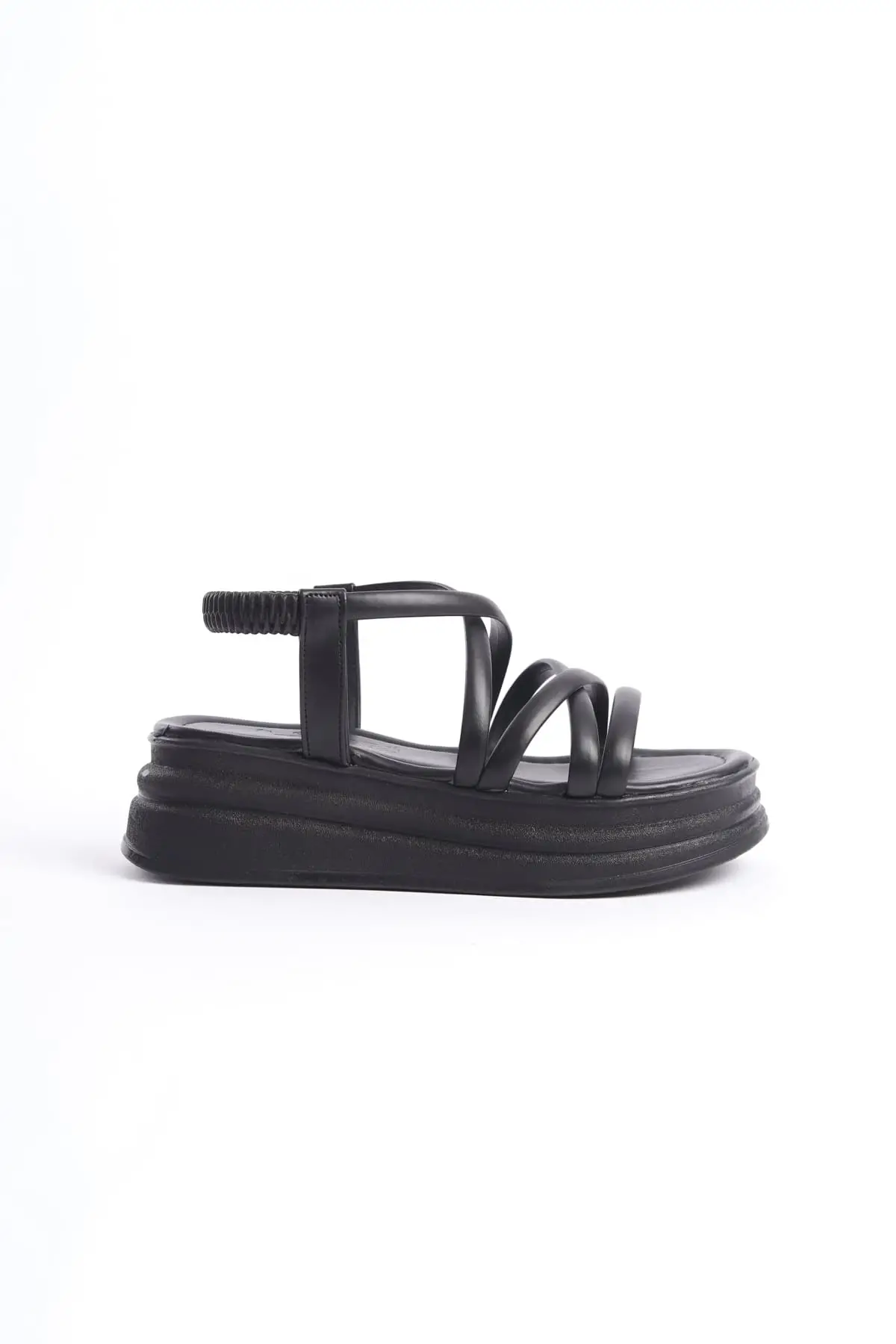 Bella Lastikli Şerit Detaylı Ortopedik Taban Kadın Sandalet St - Siyah