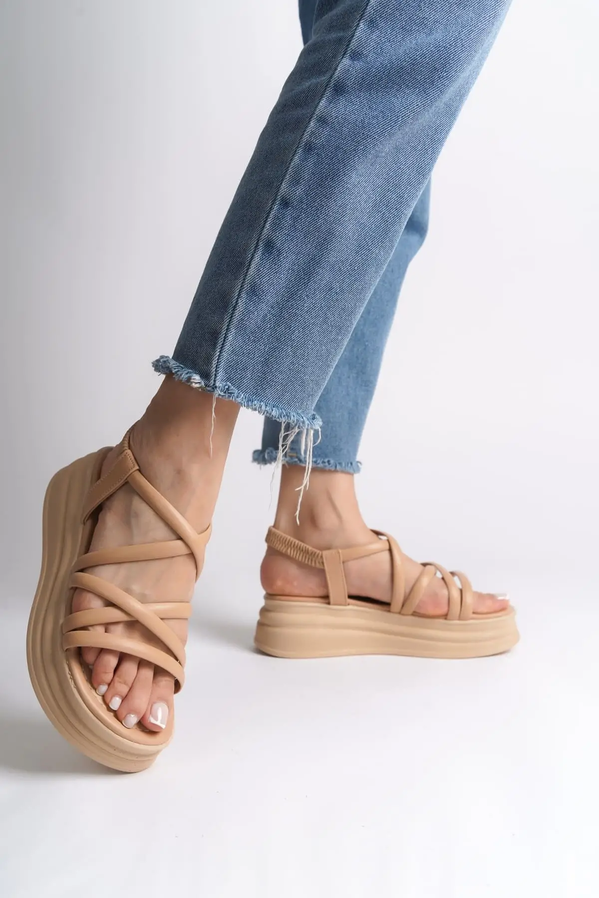 Bella Lastikli Şerit Detaylı Ortopedik Taban Kadın Sandalet Tt - Ten