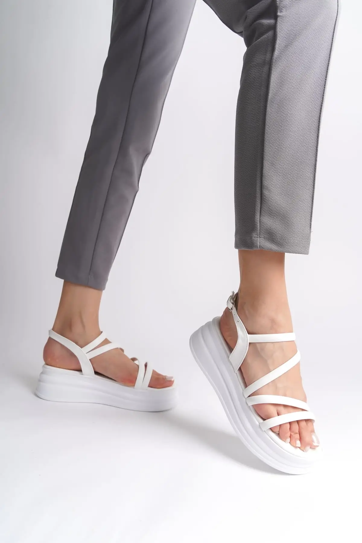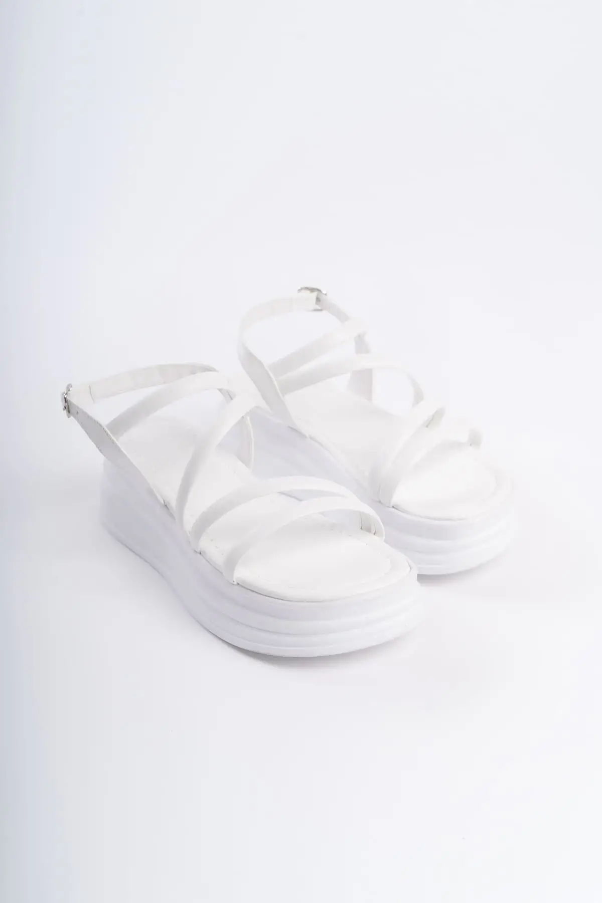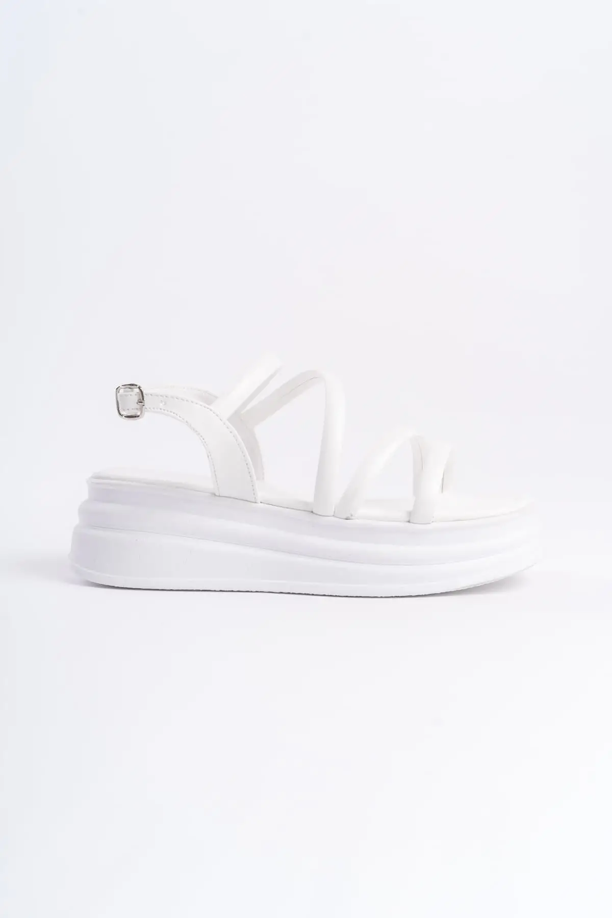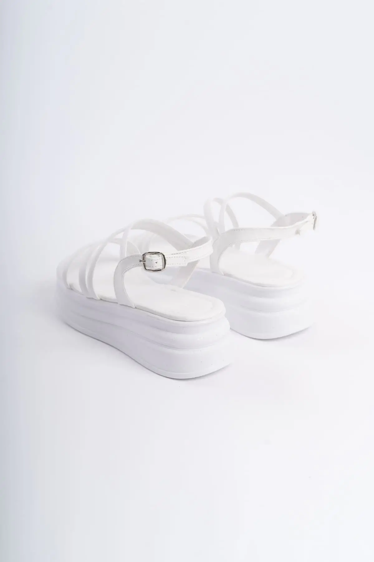 Natalıe İnce Tokalı Şerit Detaylı Ortopedik Taban Kadın Sandalet Bt - Beyaz