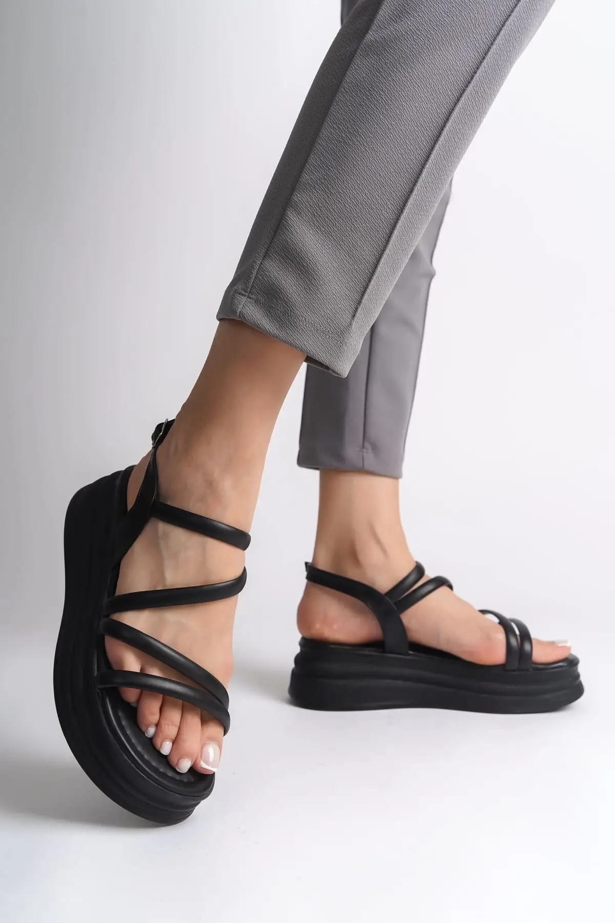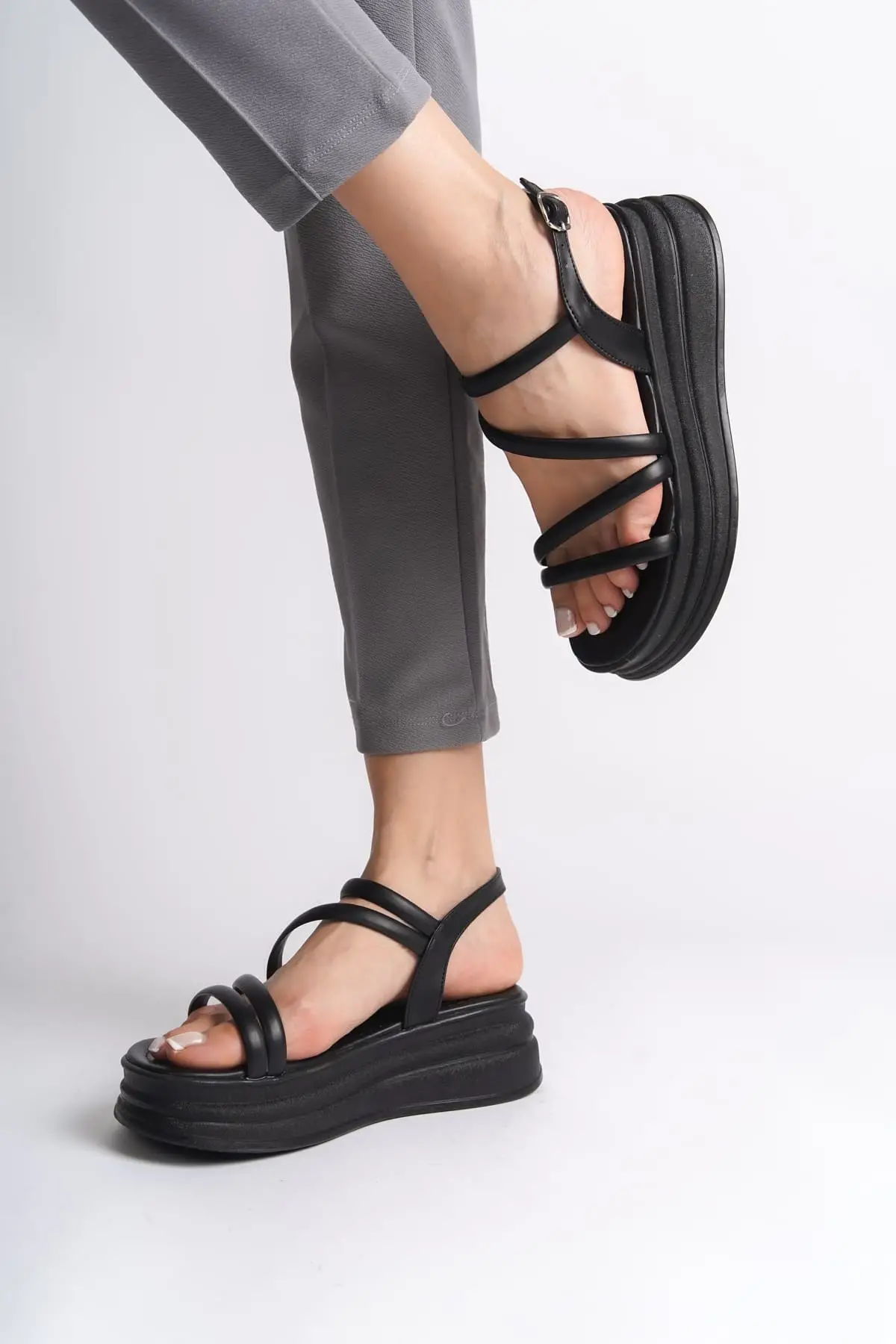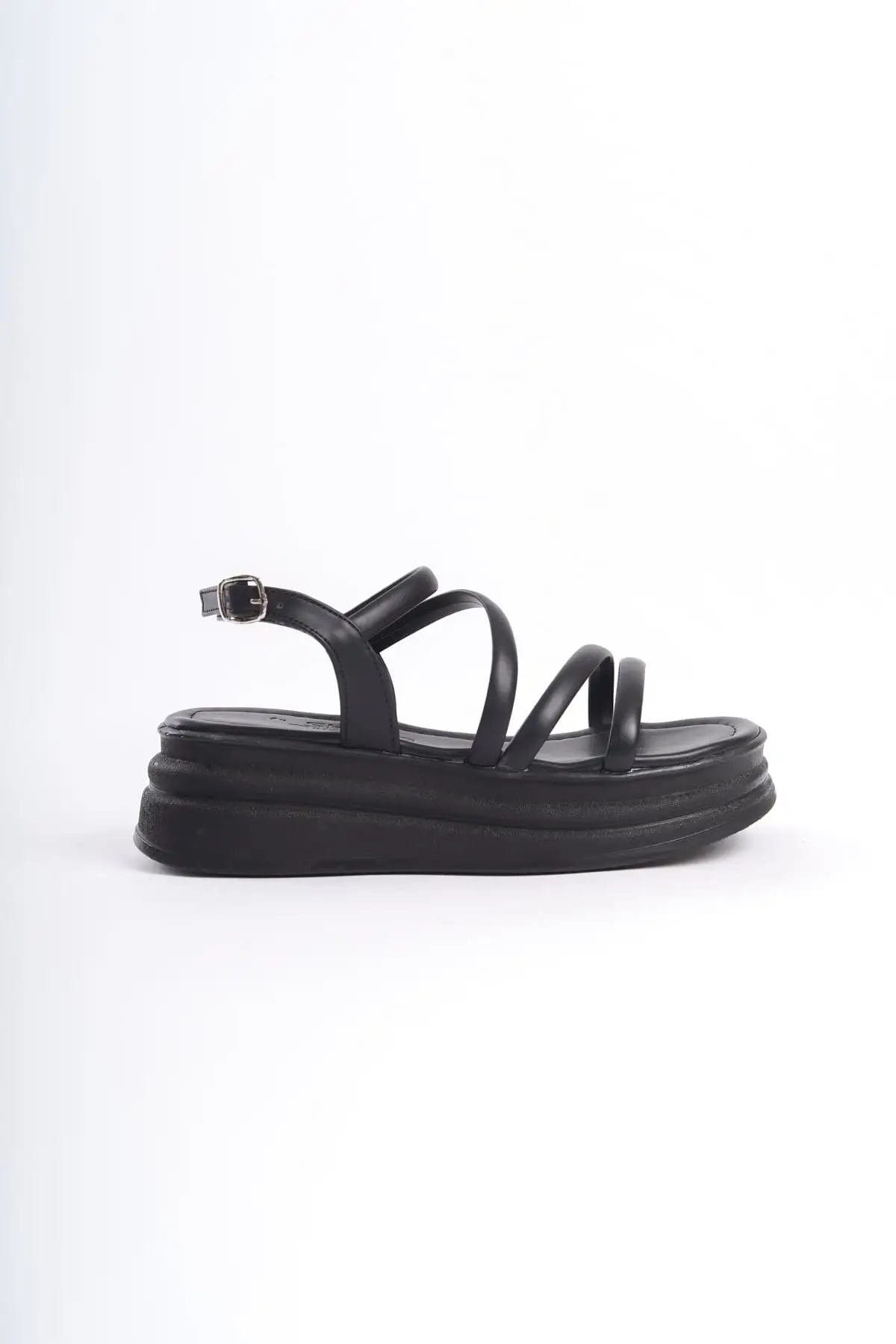 Natalıe İnce Tokalı Şerit Detaylı Ortopedik Taban Kadın Sandalet St - Siyah