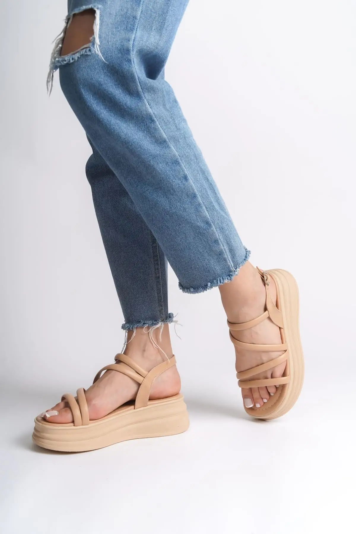 Samantha Bilekten Bağlamalı Ortopedik Taban Kadın Terlik Tt - Ten