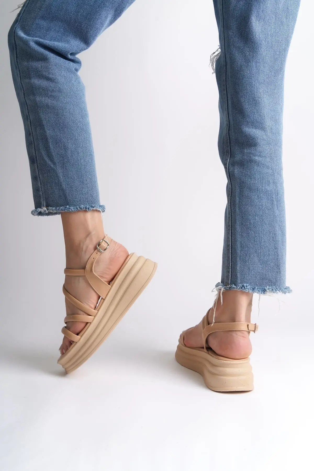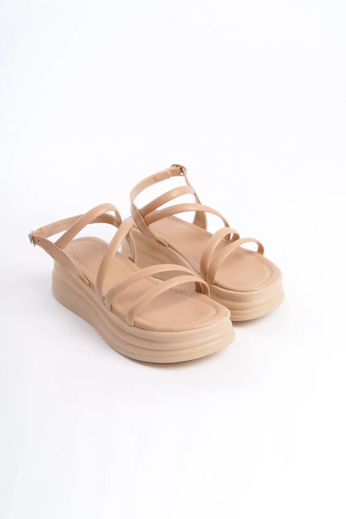 Natalıe İnce Tokalı Şerit Detaylı Ortopedik Taban Kadın Sandalet Tt - Ten