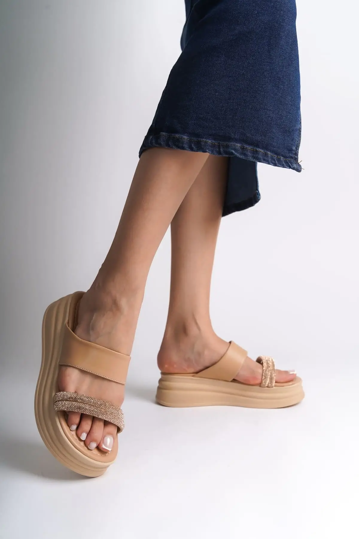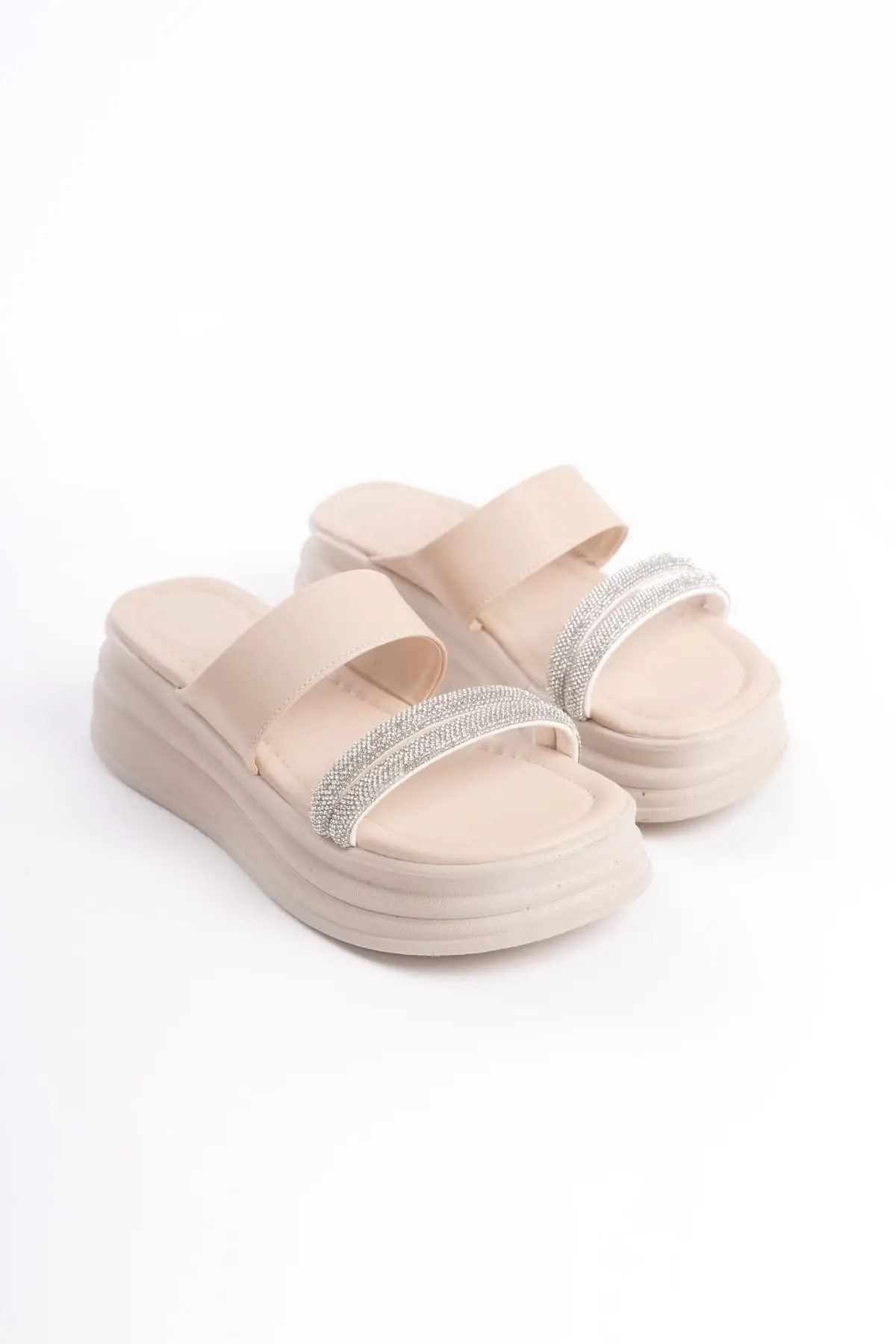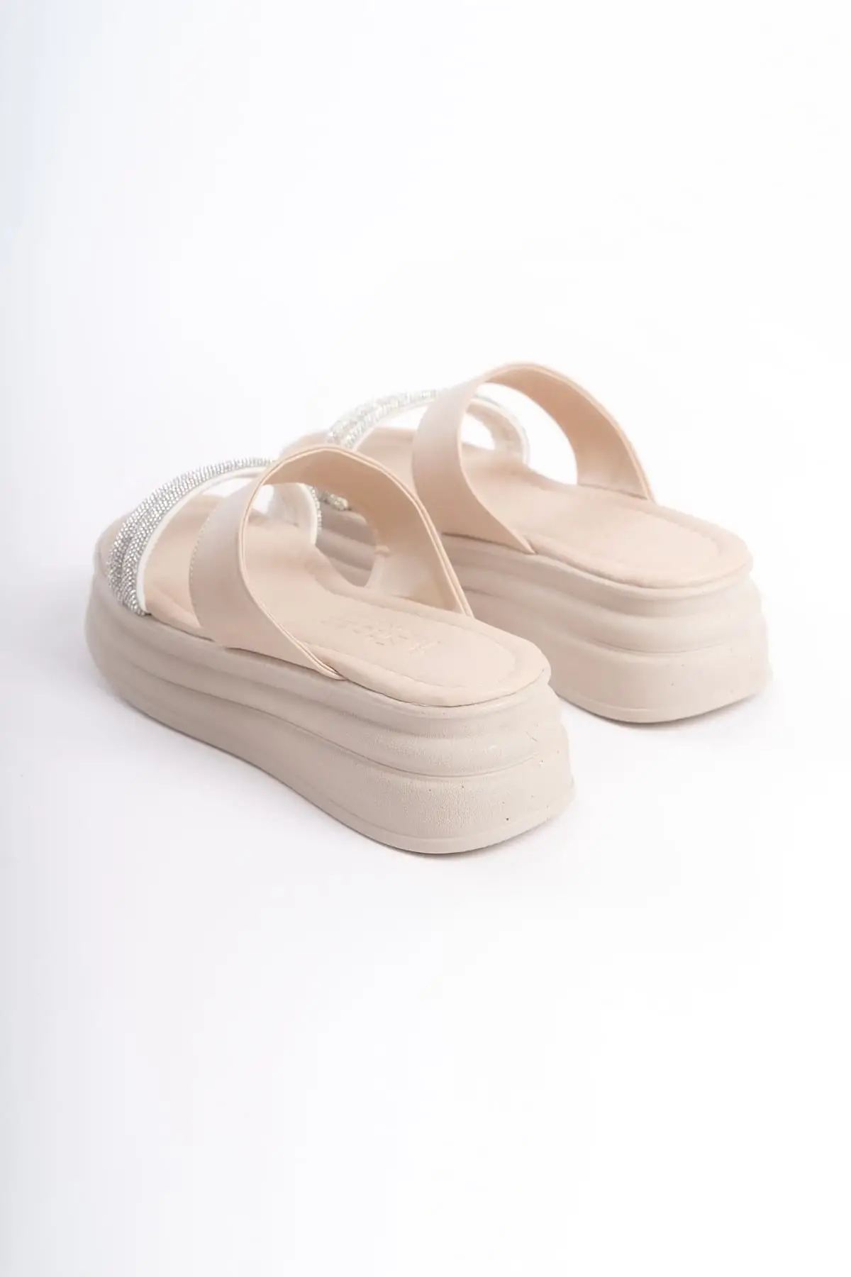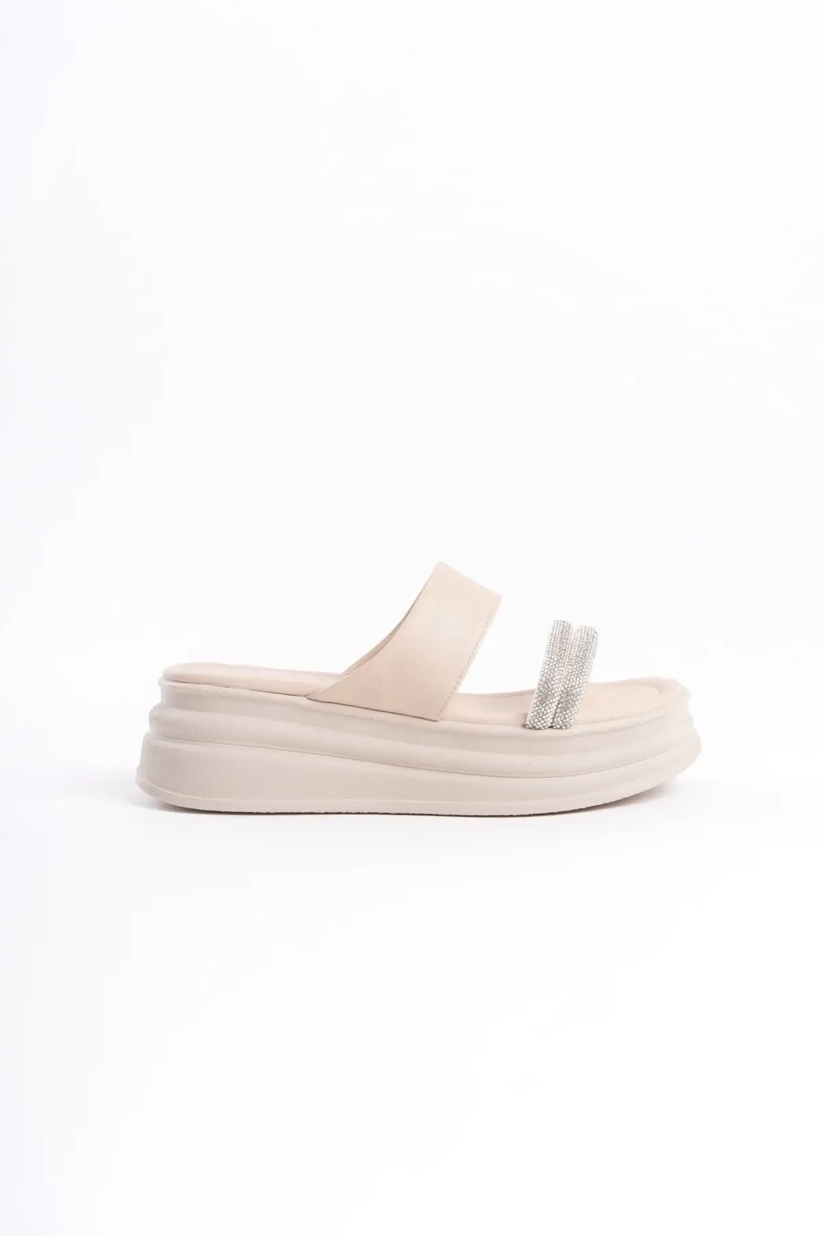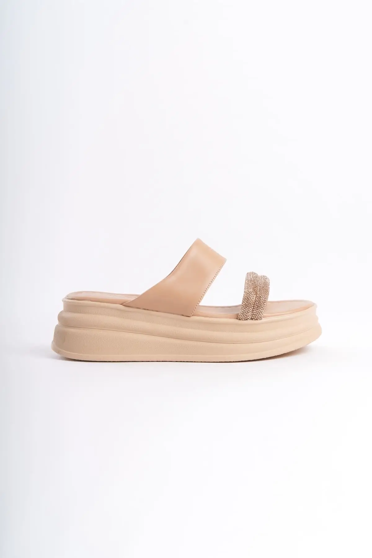 Sarah Düz Topuklu Taşlı Şeritli Kalın Ve Ortopedik Taban Kadın Terlik Tt - Ten