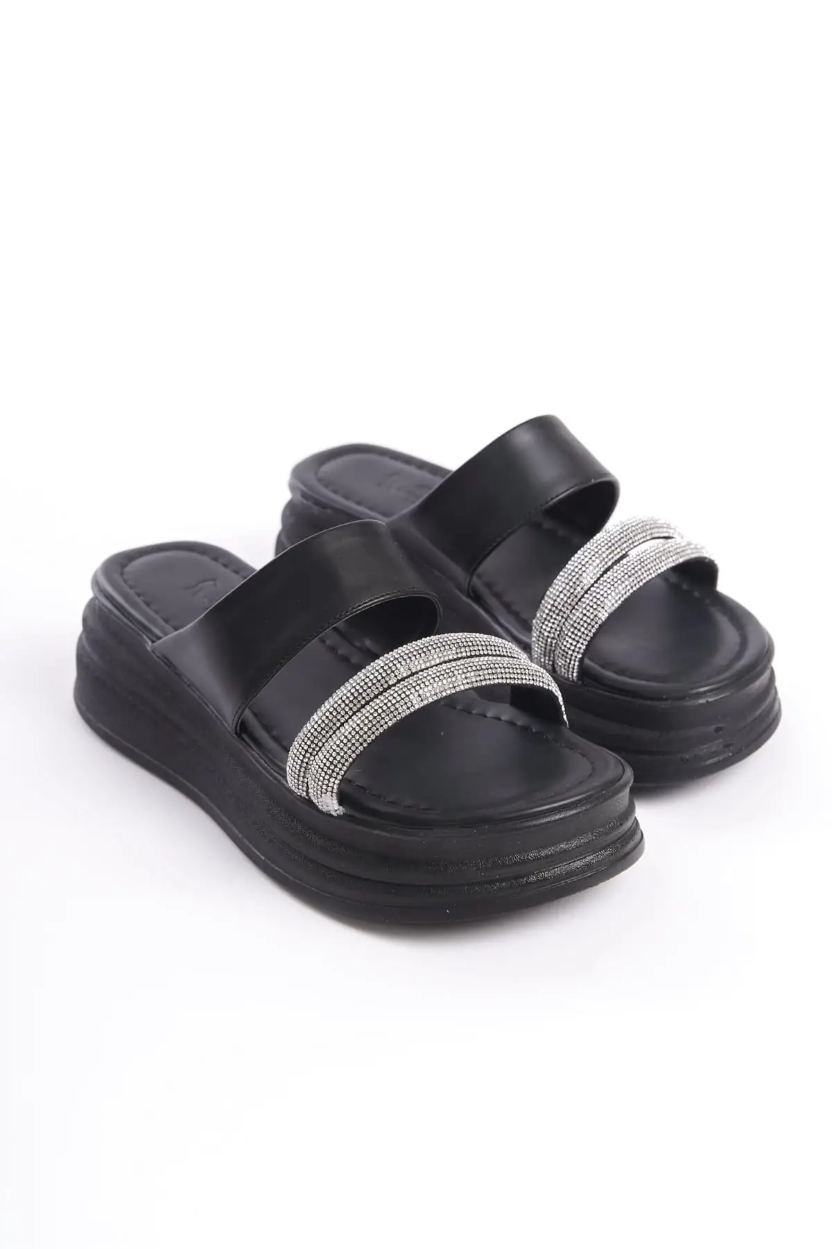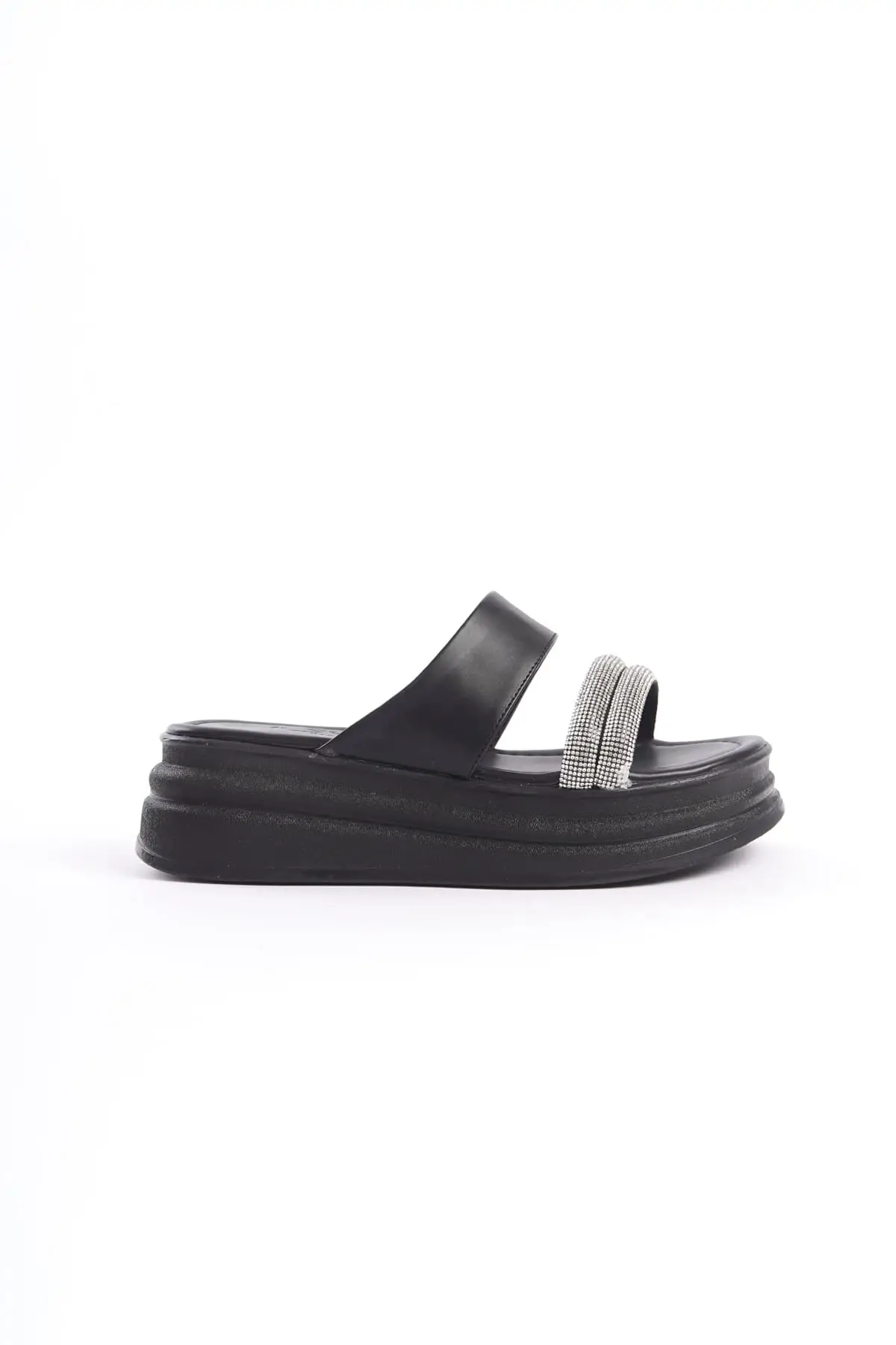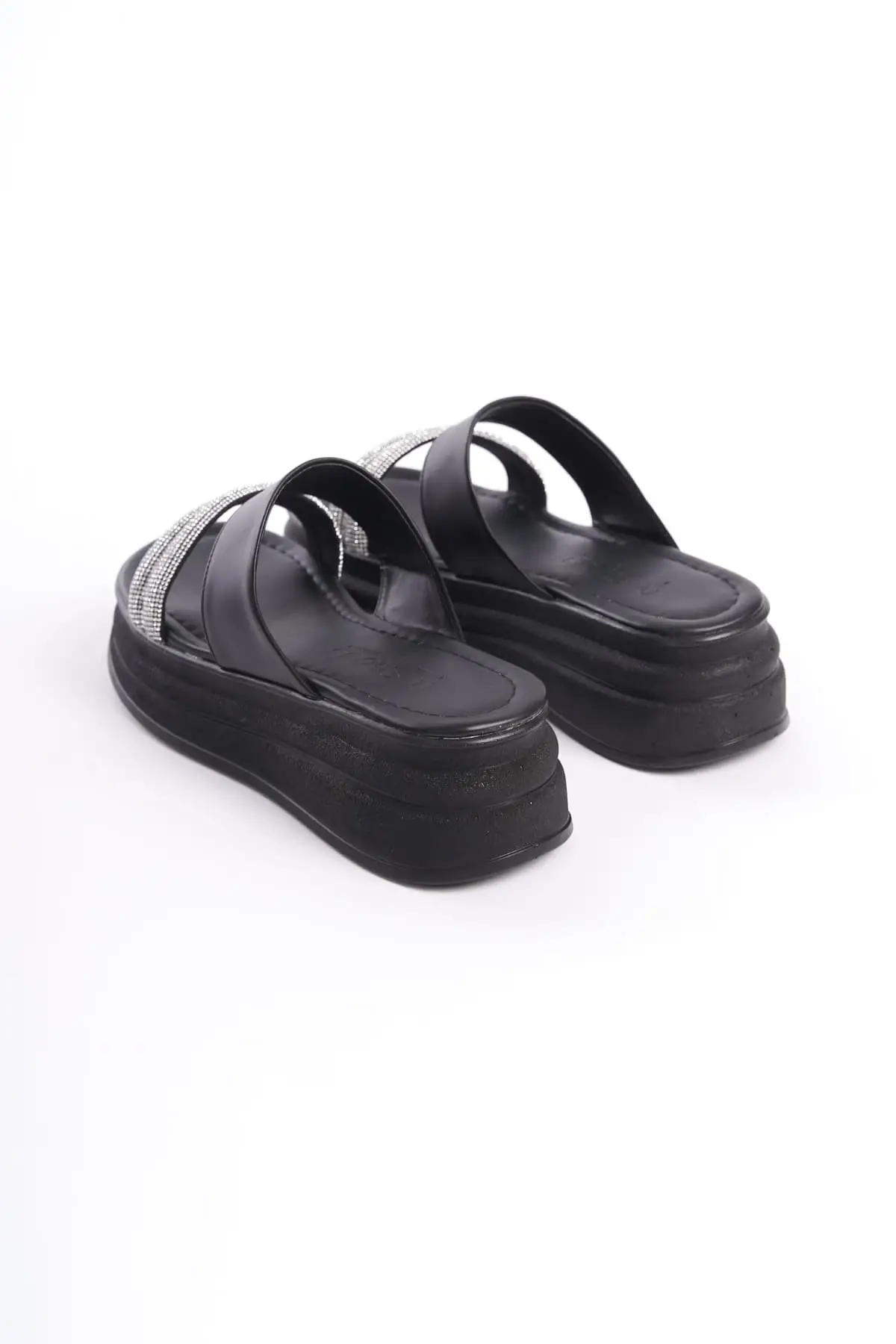 Sarah Düz Topuklu Taşlı Şeritli Kalın Ve Ortopedik Taban Kadın Terlik St - Siyah