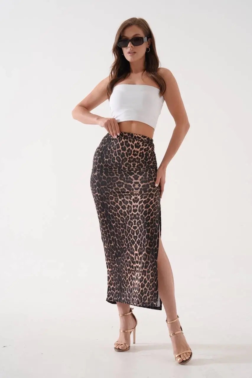 Uzun Yırtmaçlı İnce Kumaş Etek Leopar modeli, şıklığı ve konforu bir araya getiren özel bir tasarıma sahiptir. Yırtmaçlı rengi ve detayları ile stil sahibi kadınların tercihi olmaya adaydır.
