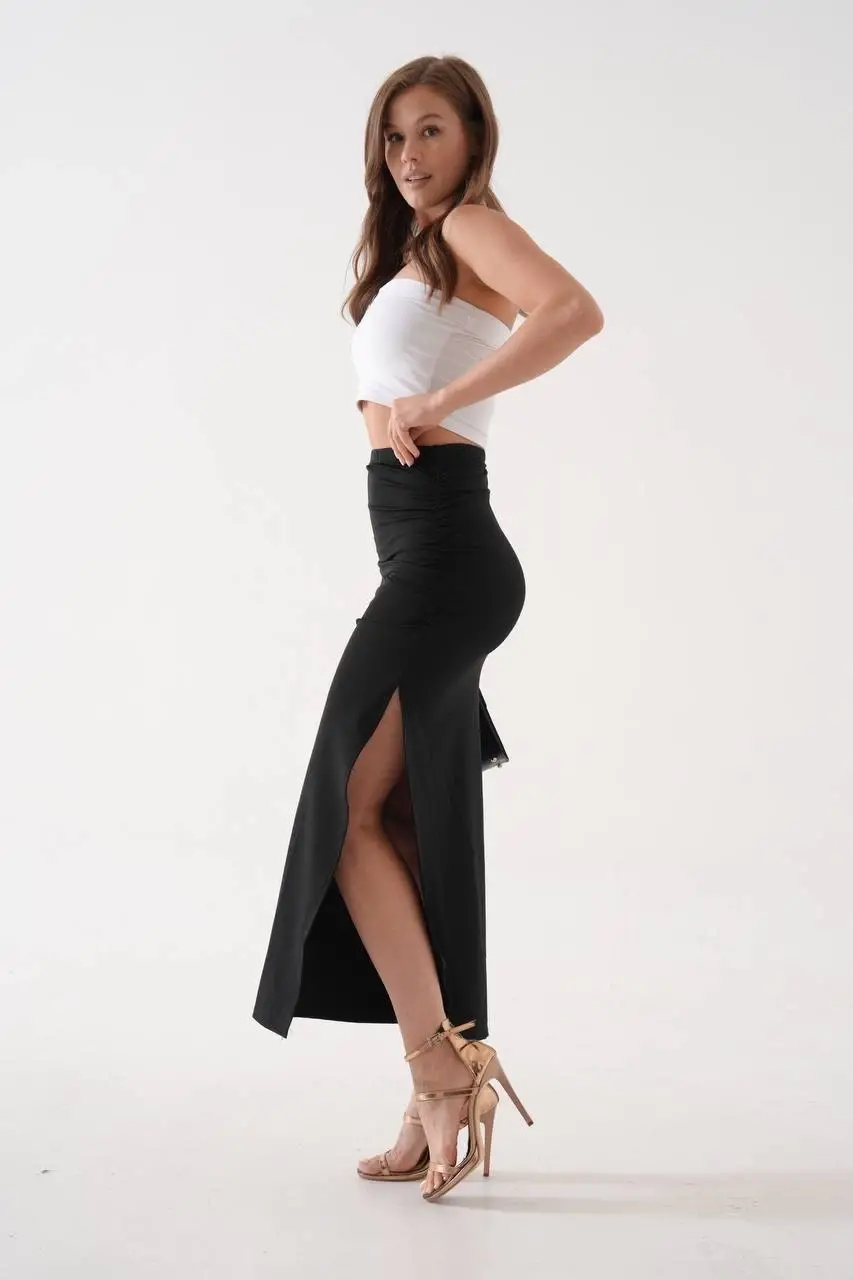 Uzun Yırtmaçlı İnce Kumaş Etek Siyah modeli, şıklığı ve konforu bir araya getiren özel bir tasarıma sahiptir. Yırtmaçlı rengi ve detayları ile stil sahibi kadınların tercihi olmaya adaydır.